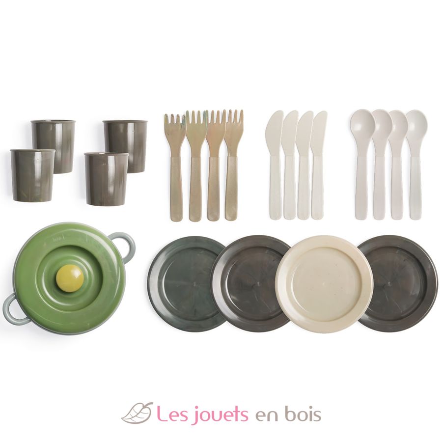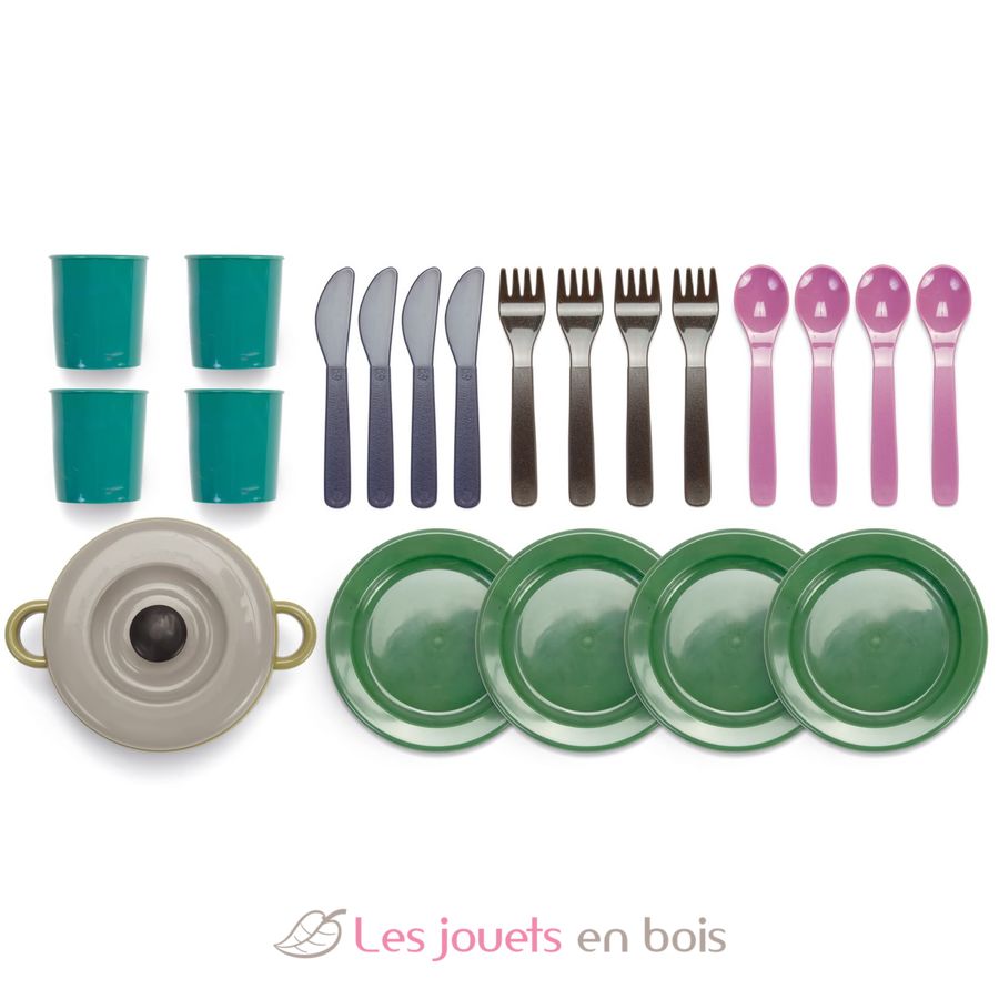 Juego de vajilla, un juguete fabricado con plástico 100% reciclado. Fabricado en Dinamarca.
