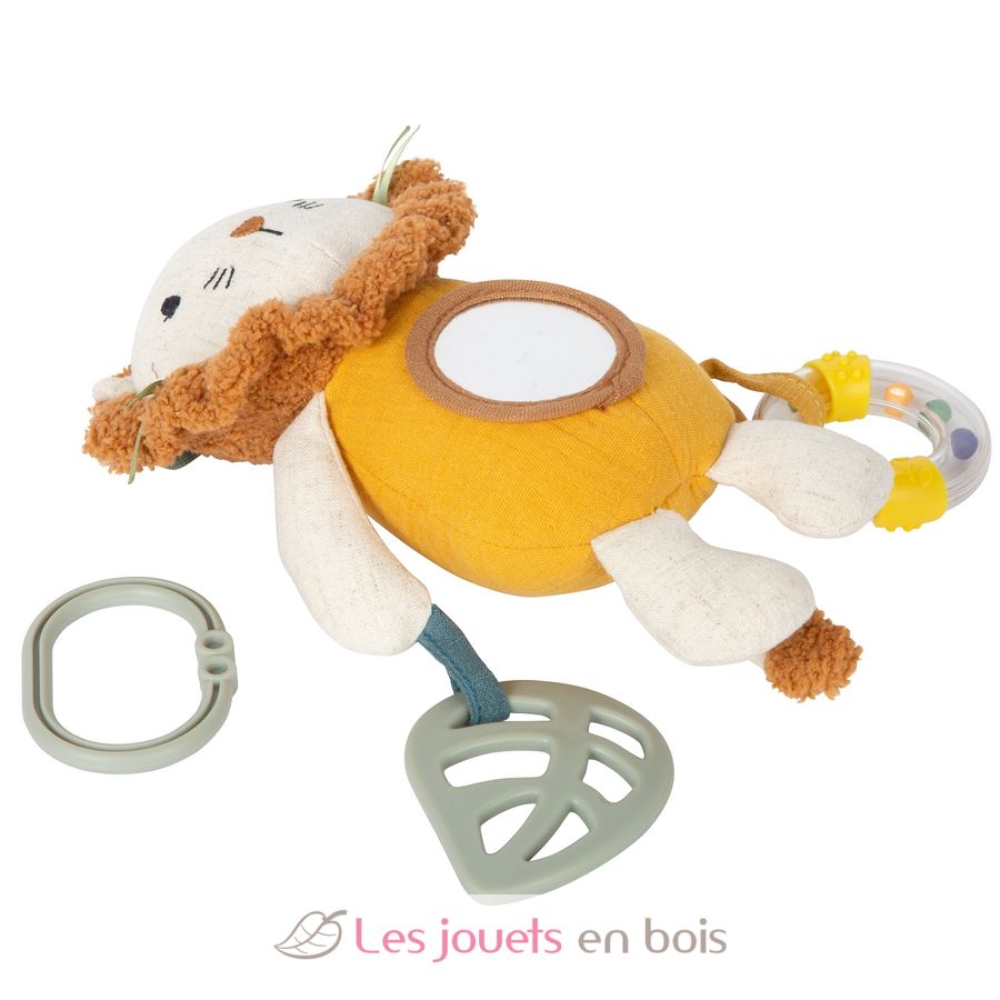 ¡Tocar, agarrar, descubrir! El adorable peluche colgante Little Lion es un compañero versátil para bebés y niños pequeños: con su anillo de dentición, sonajero y diferentes texturas, proporciona experiencias sensoriales y estimulación lúdica. Gracias a su sistema de sujeción práctico, este pequeño peluche se puede colgar en cualquier lugar: en el cochecito, en la silla de bebé o en el arco de juegos. La tela de muselina suave, la simpática cara de león y su agradable tacto convierten a este juguete para bebés en un fiel compañero para el día a día.