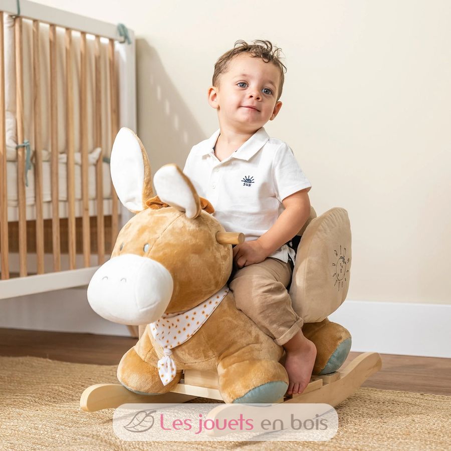 El juguete mecedor está hecho de un material muy suave. Gracias al cinturón, el bebé se divertirá con total seguridad. La mecedora se usa de 10 a 36 meses. Las dimensiones de Leo el burro mecedor son 63,5 cm de largo, 33,5 cm de ancho y 46 cm de alto.