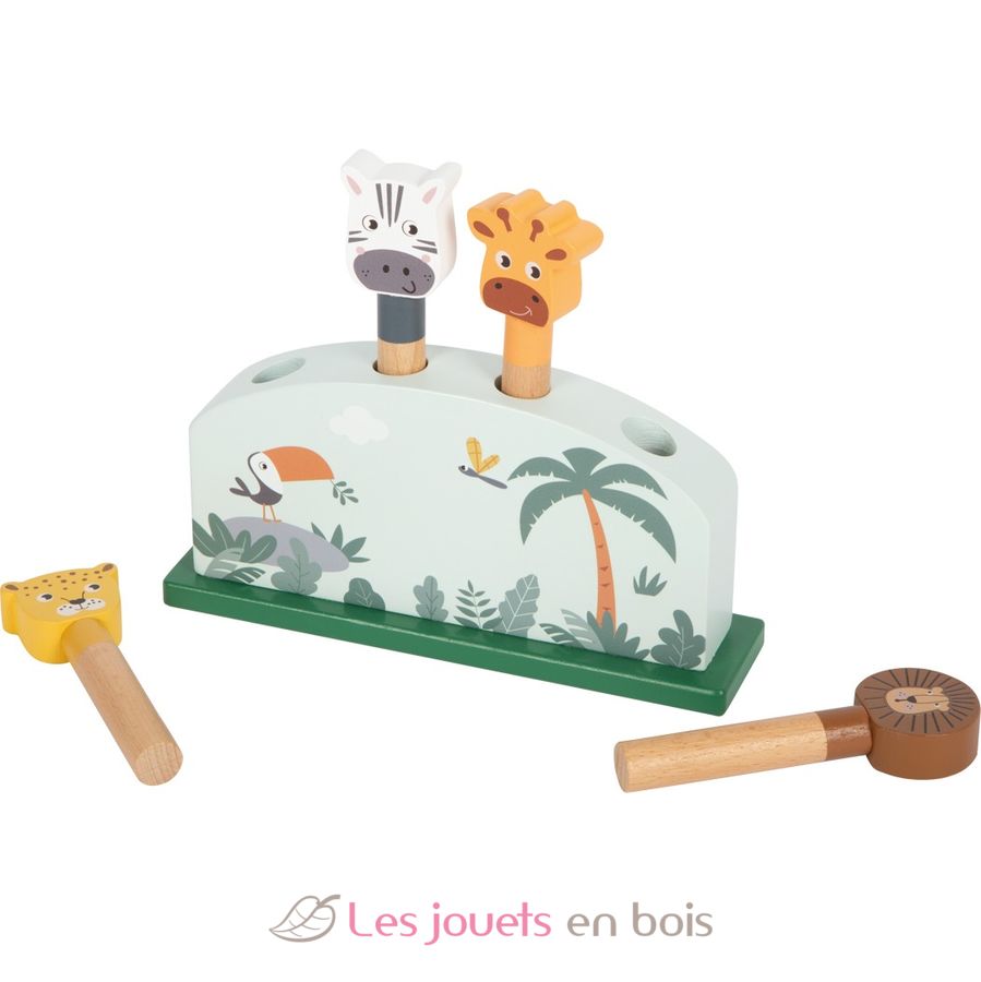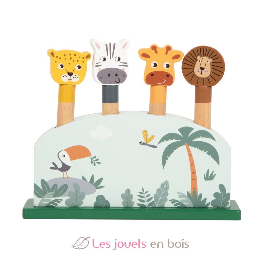 Juguete pop-up animales Safari, un juguete de actividades de madera de la marca Small foot.