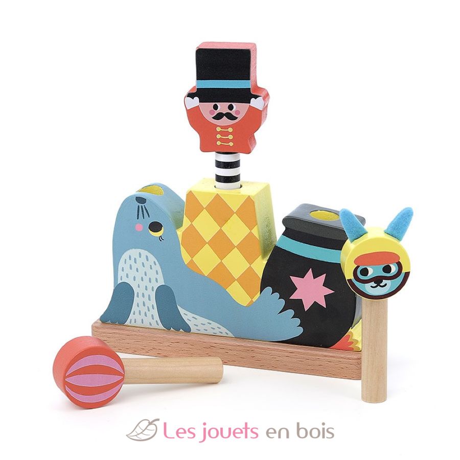 Descubre este simpático juguete pop-up de madera con temática del circo. ¡Qué divertido es presionar estas pequeñas figuras de madera y verlas rebotar y volar! ¡Presiona, suelta y atrapa!