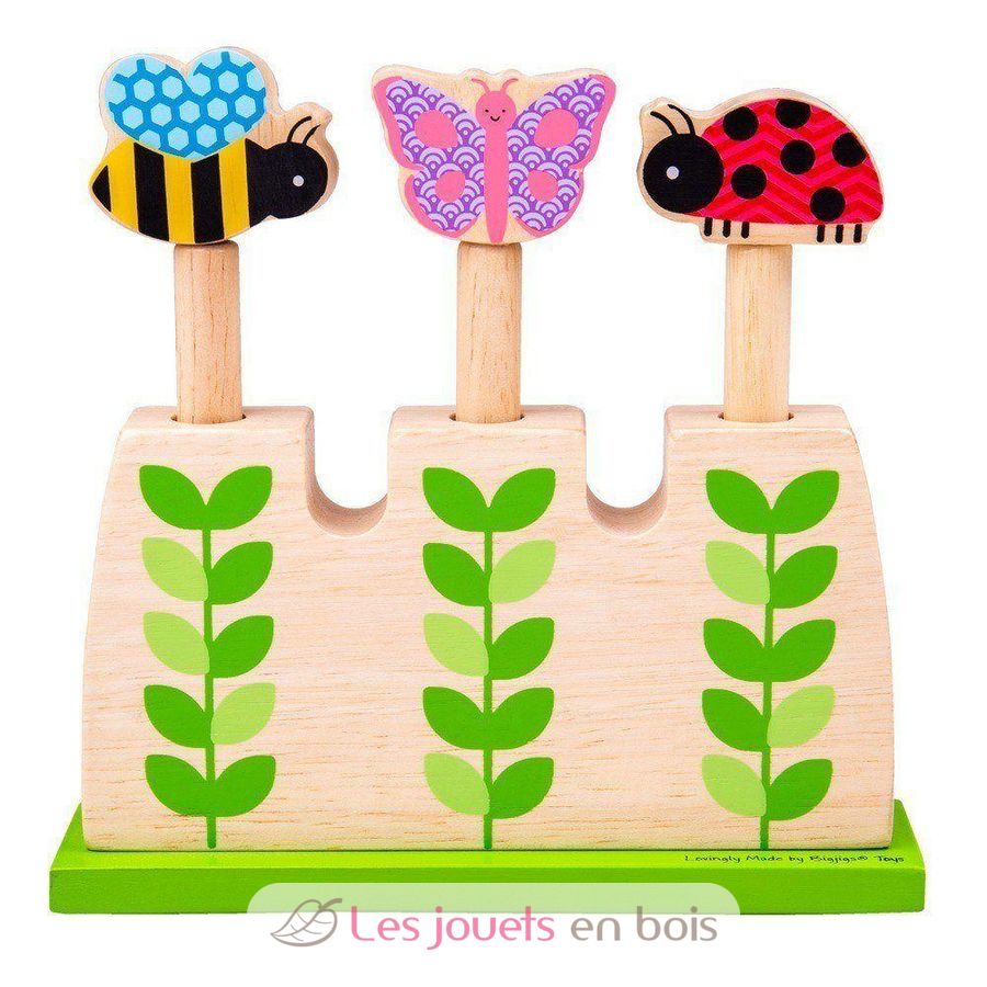 Mira como los adorables insectos de jardín "aparecen" de las plantas de jardín. ¡Empuja, suelta, atrapa!