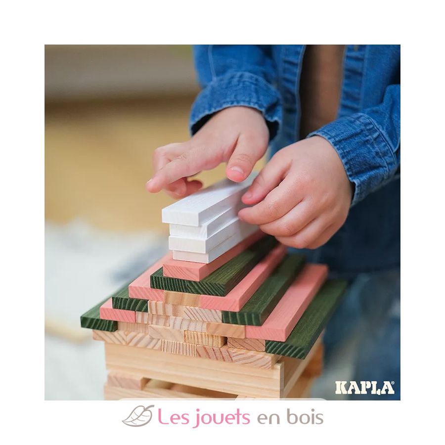 Encuentra la caja básica de los juegos de construcción Kapla en una variedad de colores de primavera.