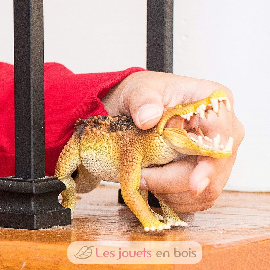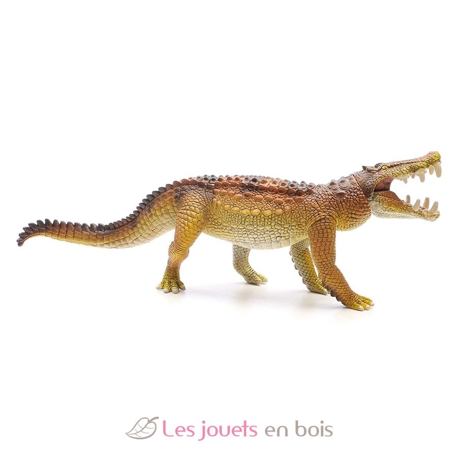 Hacía temblar a sus presas con sus larguísimos caninos que le servían de defensa. Su anatomía es ideal para correr, ya que en comparación con otros cocodrilos, sus patas traseras son mucho más largas. PAPO devuelve a la vida a este carnívoro de la familia "Mahajangasuchidae", que medía casi 8 m. De pie sobre sus patas delanteras, con la boca bien abierta, parece listo para una pelea despiadada.