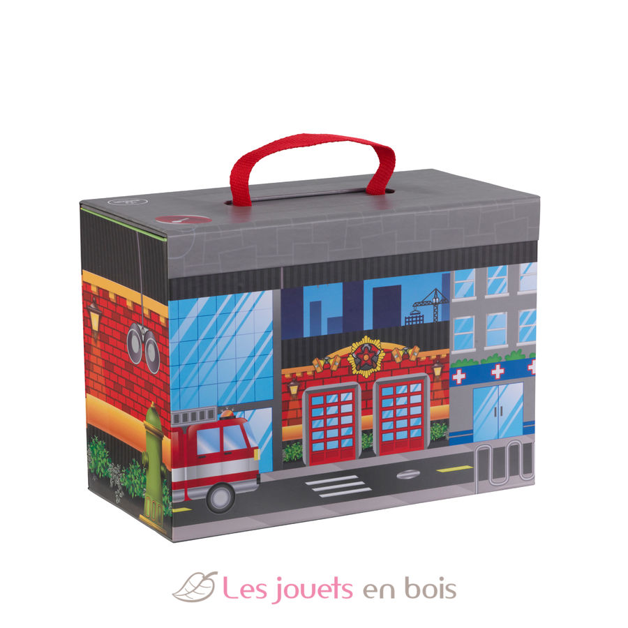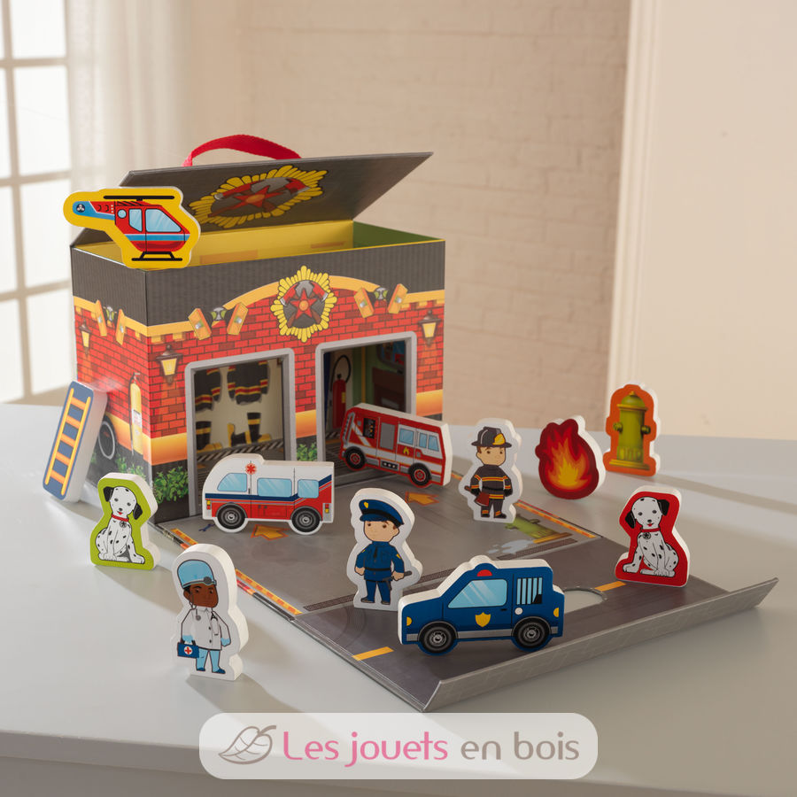 El juguete de viaje "The Rescue", un maletín de juguetes de Kidkraft que se puede llevar a todas partes. Artículo #63384.