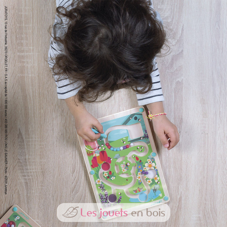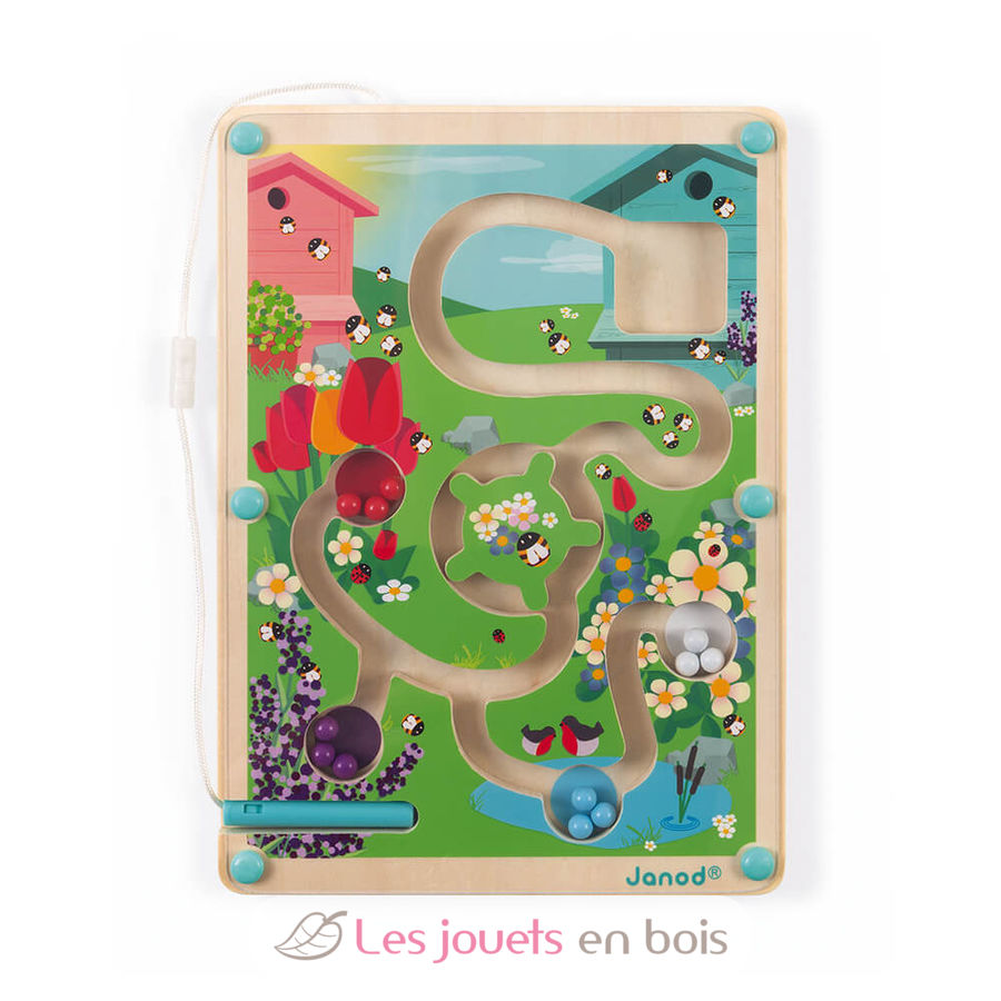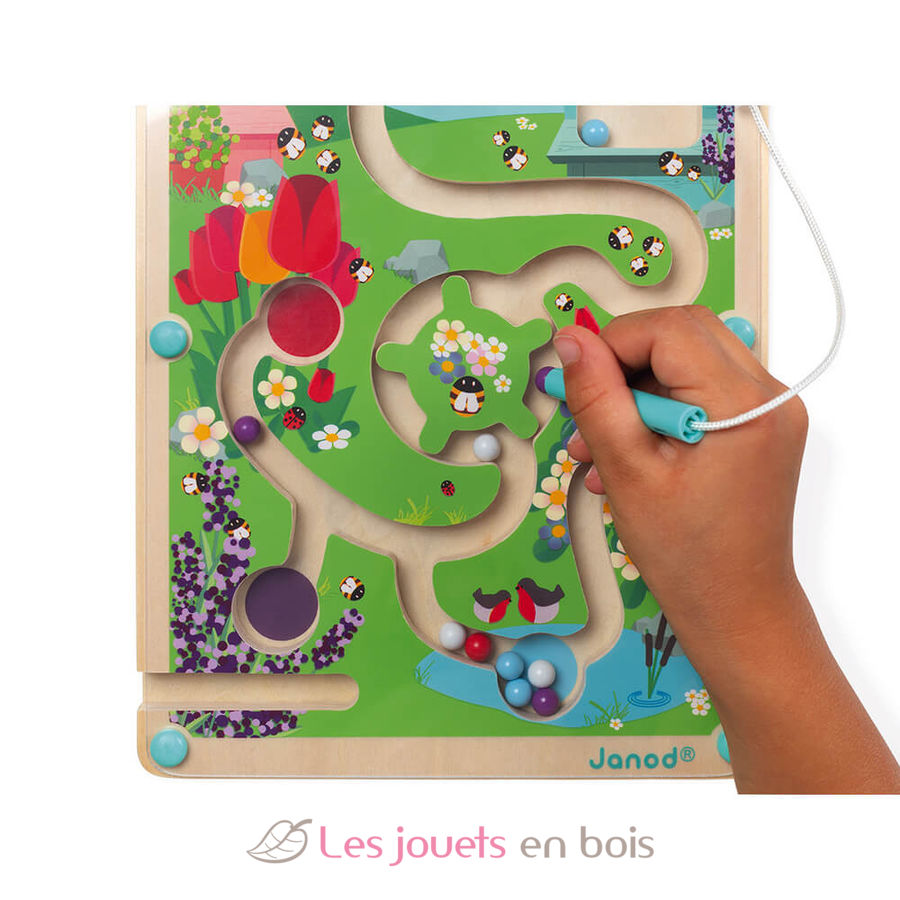 Desde la colmena, tendrás que cruzar el laberinto y llevar las 12 canicas de colores a la zona correspondiente utilizando el lápiz magnético: azul para el estanque, rojo para los tulipanes... ¡Pero tendrás que ser hábil para superar los escollos del recorrido y tomar bien el torniquete para no quedarte atascado! Este juego es perfecto para trabajar la motricidad fina y aprender a sujetar bien el lápiz.