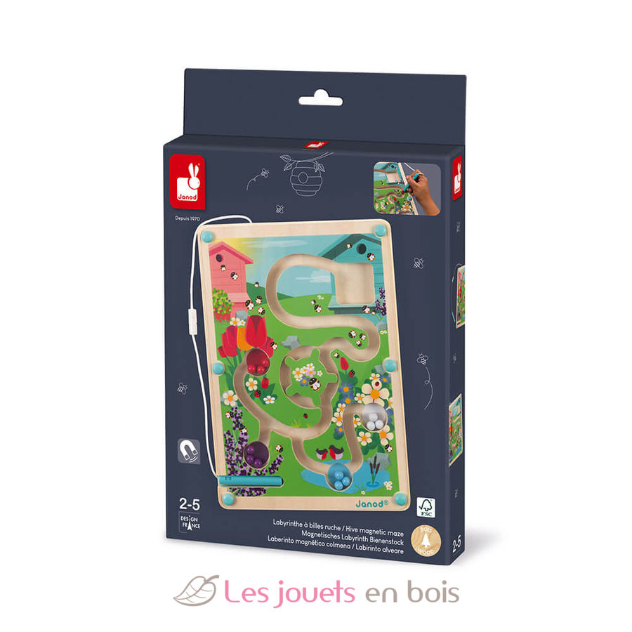 Laberinto de mármol Hive, un juego de aprendizaje temprano de madera de la marca Janod. Referencia J05310.
