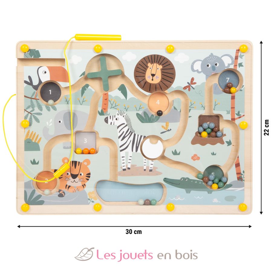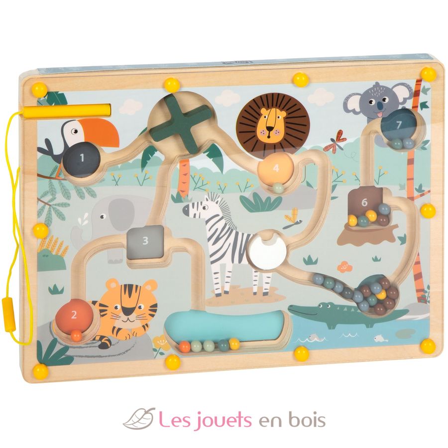 ¡Ordenar, contar, empujar! Este laberinto magnético de madera FSC certificada promete una actividad duradera y motiva con ilustraciones detalladas del mundo animal.