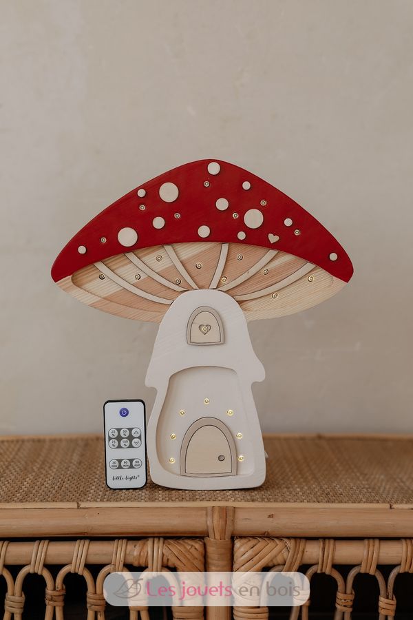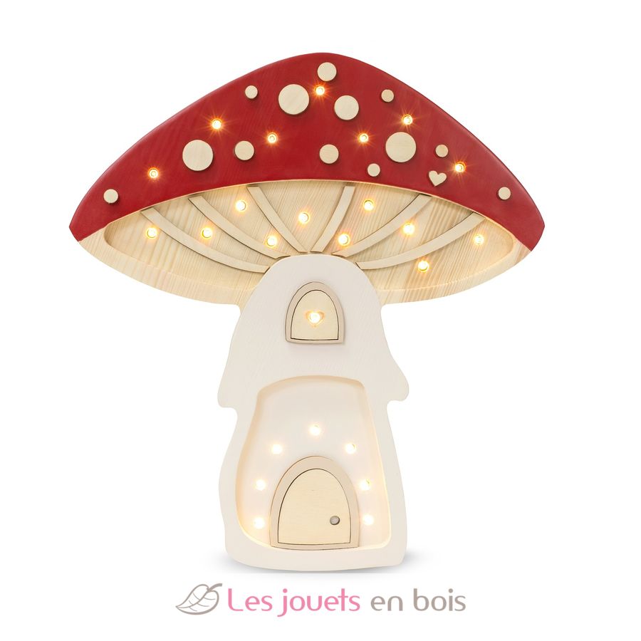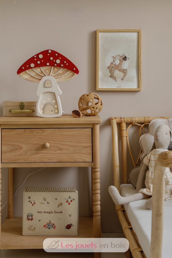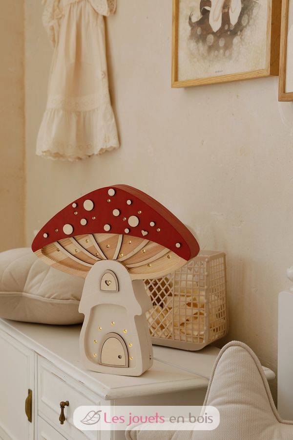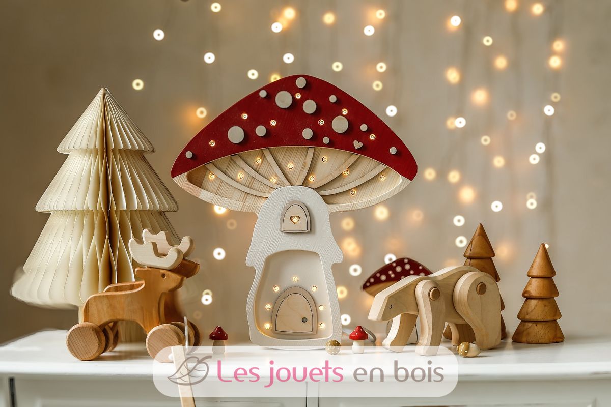 Adorable lámpara nocturna de madera para niños con forma de hongo.