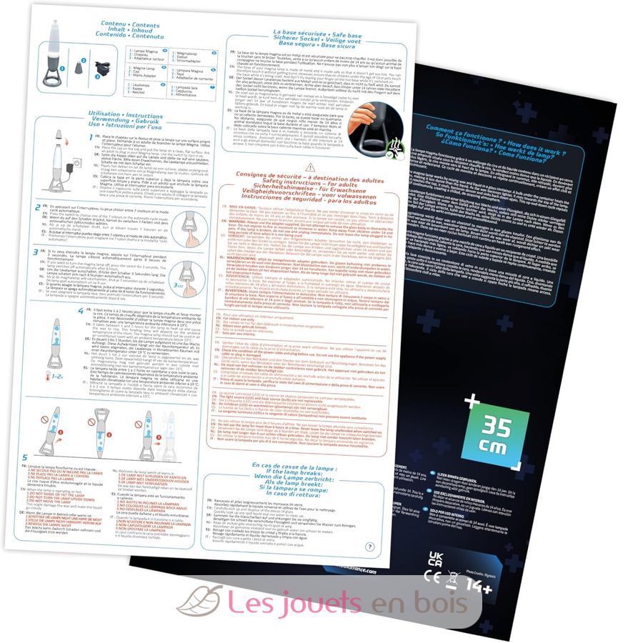 - Advertencias de seguridad: UTILISATION EN INTÉRIEUR UNIQUEMENT. Ne pas laisser à porter des enfants de moins de 14 ans. Ceci est une lampe décorative, et non un jouet. Lire attentivement les instructions avant utilisation. La source lumineuse LED et la source de chaleur ampoule ne sont pas remplaçables.