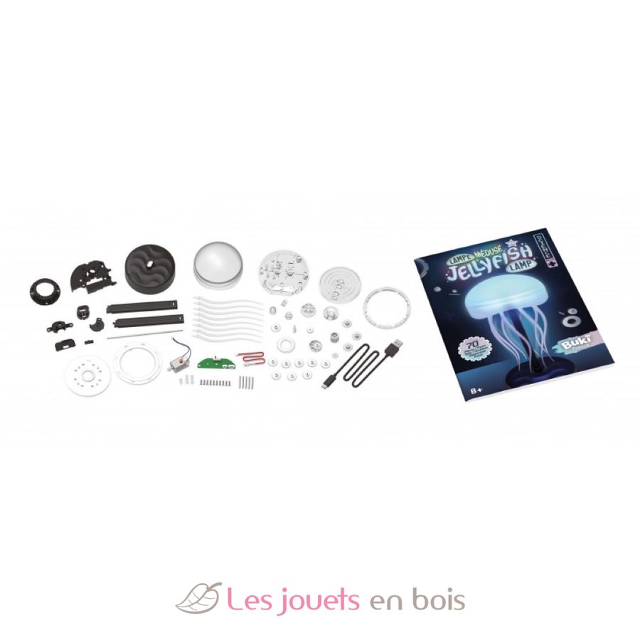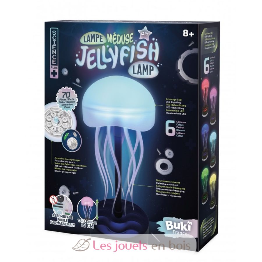 Construye una lámpara de medusa ensamblando las piezas y los engranajes. La lámpara se ilumina con 6 combinaciones de colores diferentes que cambian automáticamente.