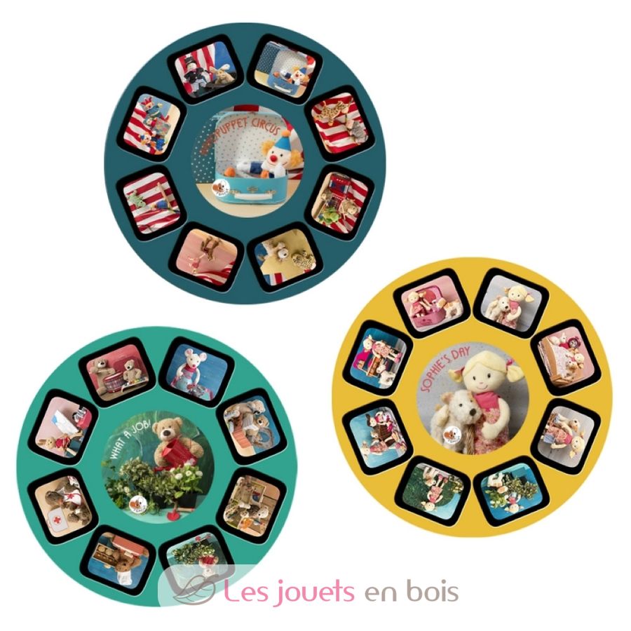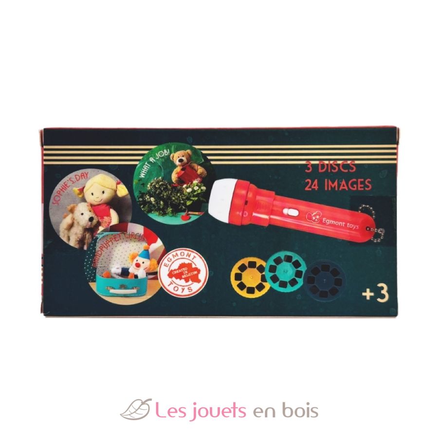 Esta lámpara incluye 3 pequeños discos insertables que muestran 24 fotos de juguetes de Egmont Toys. Las imágenes se pueden proyectar en las paredes, el techo y más. ¡Descubre el día de Sofía, las manualidades y el circo de marionetas!