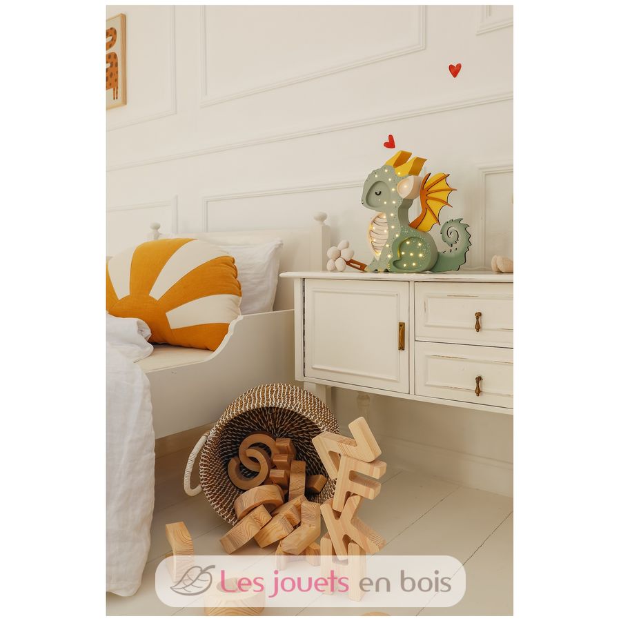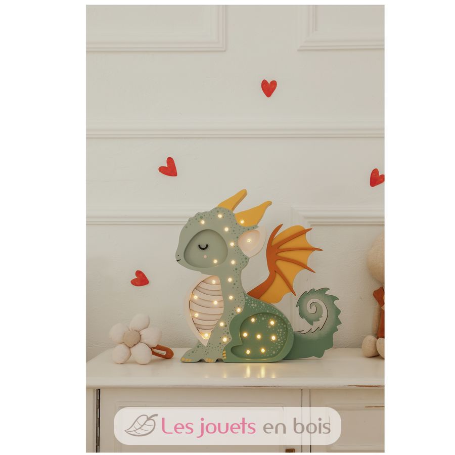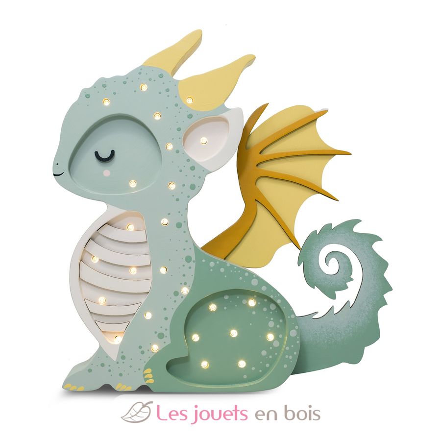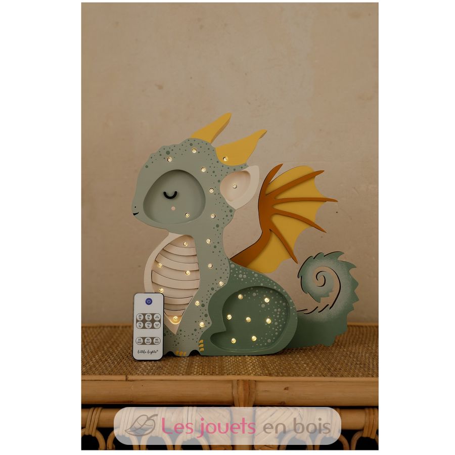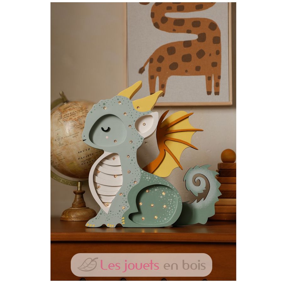 Adorable lámpara nocturna de madera para niños con forma de dragón.