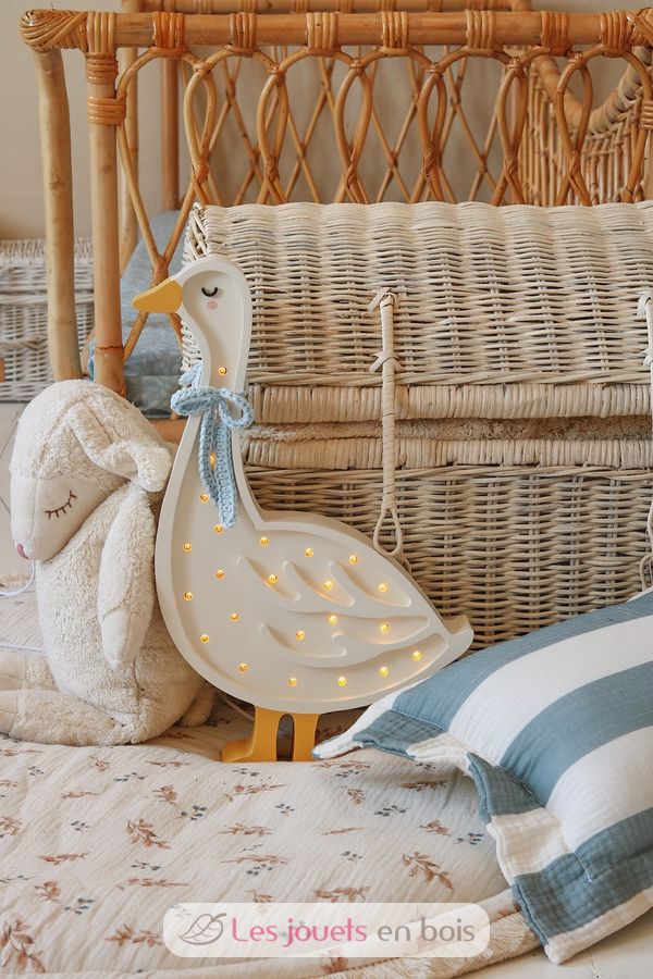Adorable lámpara nocturna de madera para niños con forma de ganso.