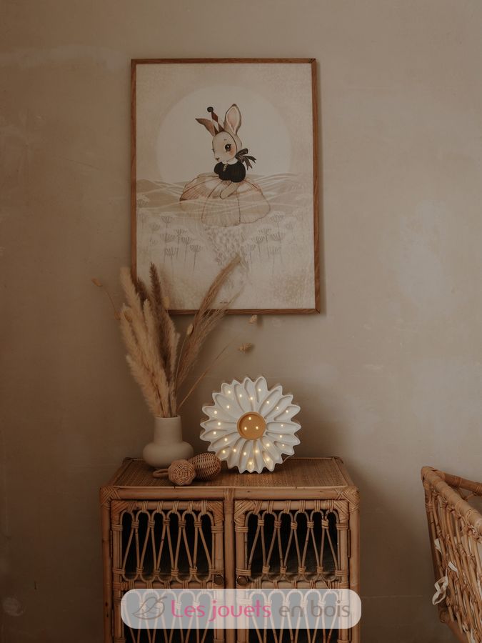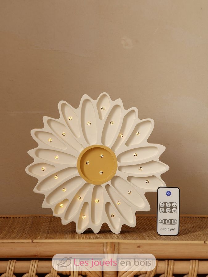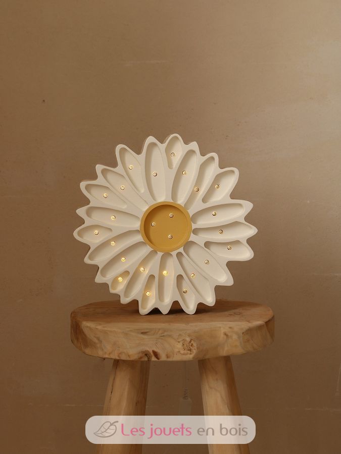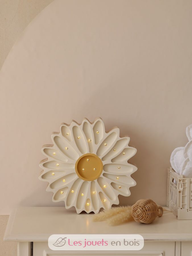 Adorable lámpara nocturna de madera para niños con forma de margarita.