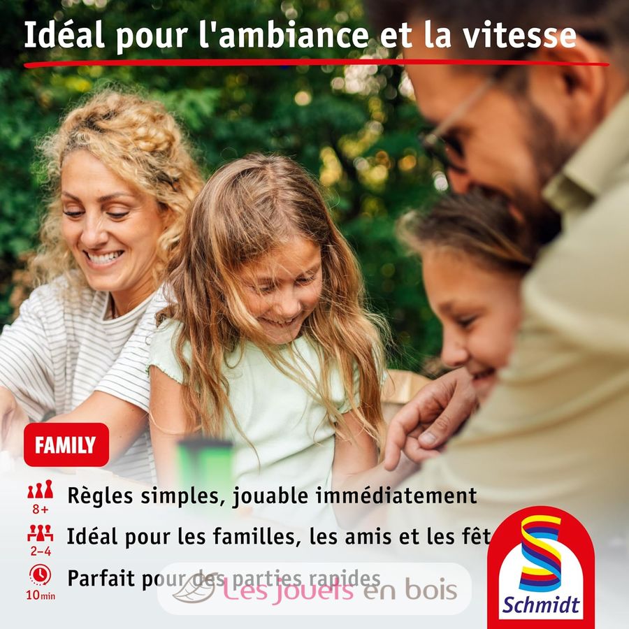 Contenido: 160 cartas con 4 dorsos diferentes. De 2 a 4 jugadores. A partir de 8 años. Tiempo de juego: 10 minutos.