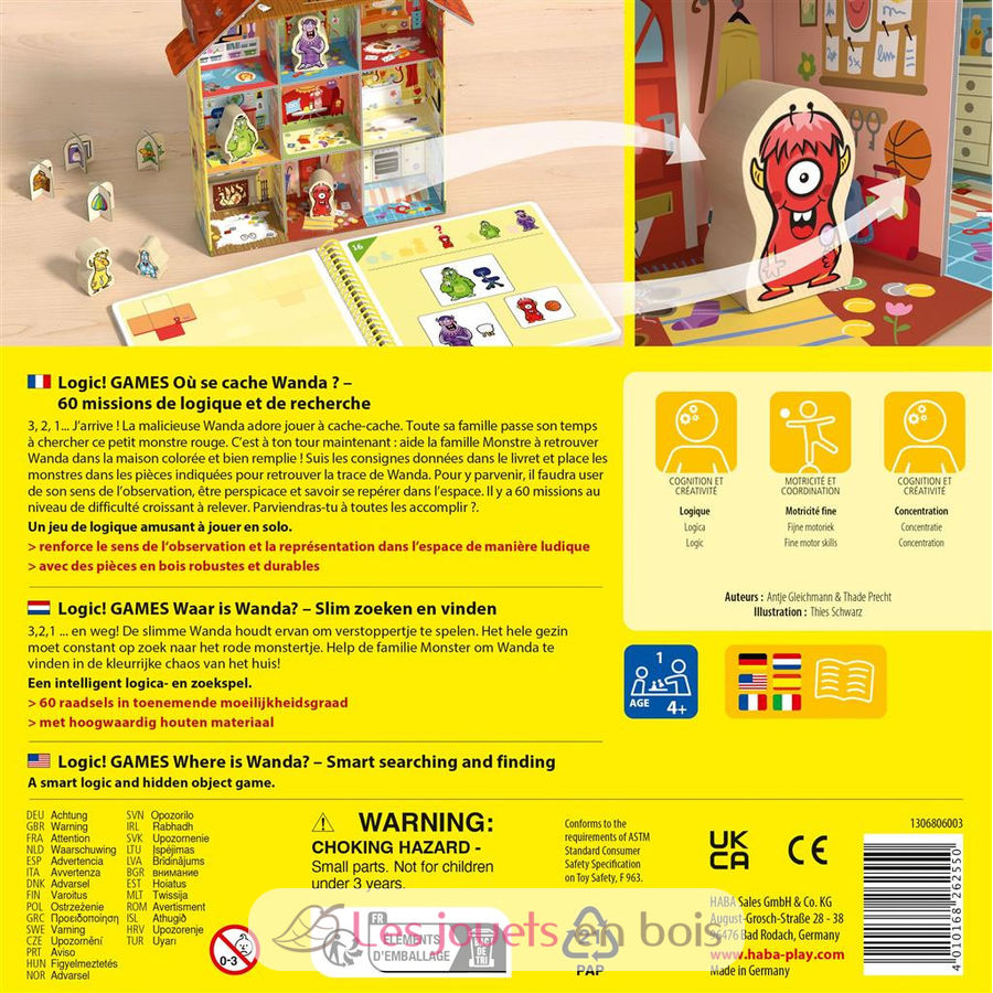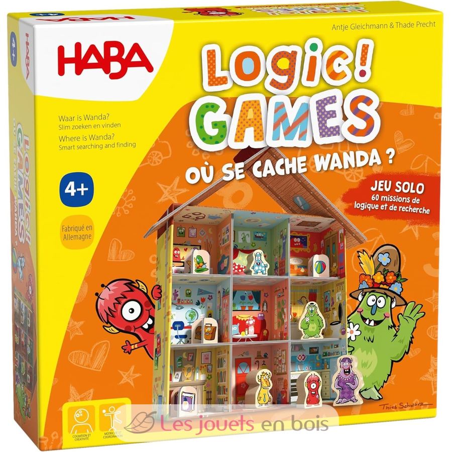 3, 2, 1... ¡ya! A la pícara Wanda le encanta jugar al escondite. Su familia se pasa el día buscando a esta monstruita roja. Ahora te toca a ti. ¡Ayuda a esta familia de monstruos a encontrar a Wanda en su bulliciosa y colorida casa! Coloca a cada monstruo en una habitación determinada y descubre dónde se esconde Wanda. El grado de dificultad de los 60 retos aumenta con cada ronda. ¿Lograrás resolverlos todos?