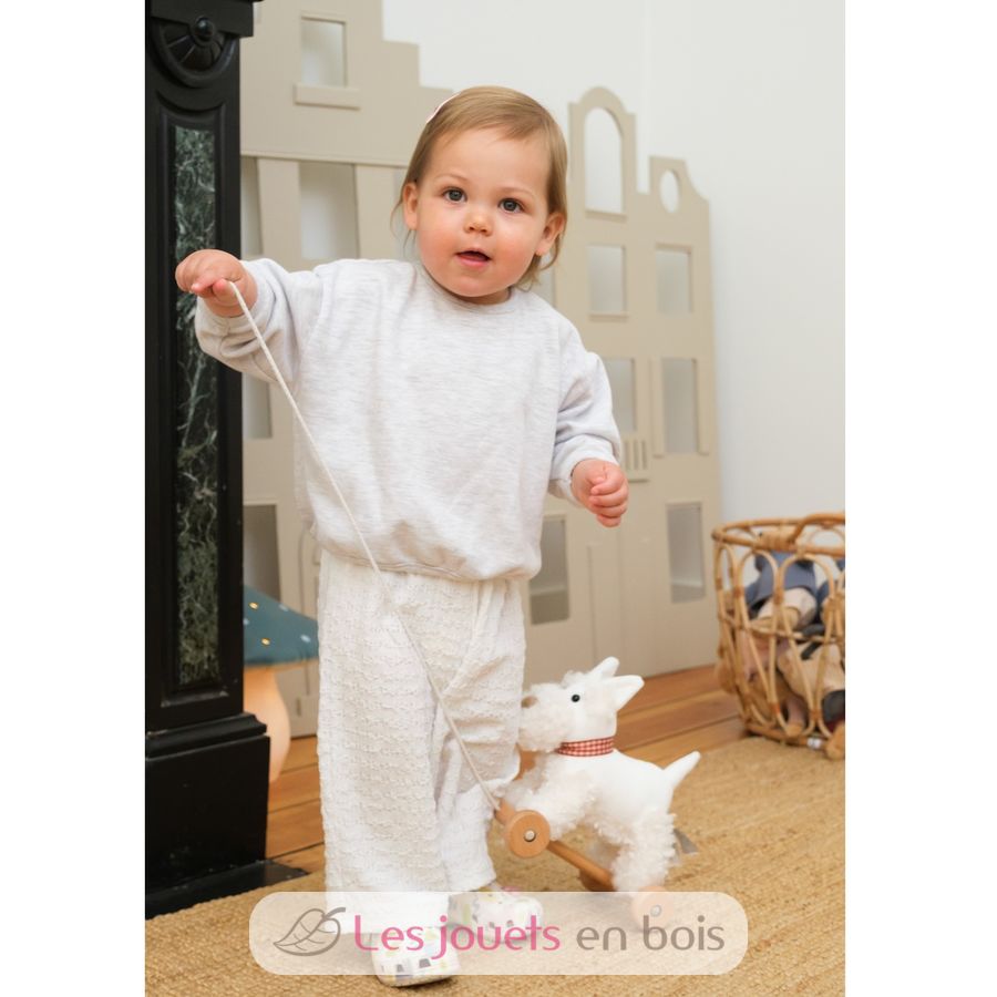 ¡Conoce a Lola, el perro en sus pequeñas ruedas de madera! ¡Este adorable perro peluche está listo para seguir a su pequeño maestro en todas partes!