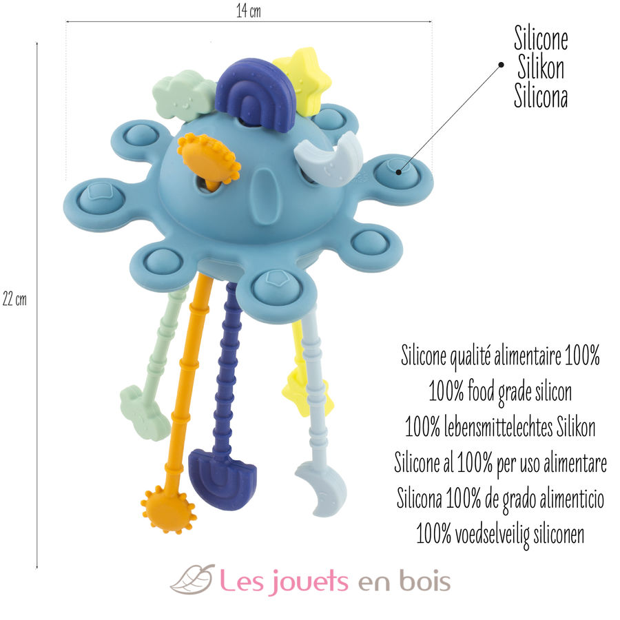 Este juguete de silicona ha sido creado especialmente para ayudar al desarrollo sensorial de los niños. Fabricado en silicona de calidad alimentaria.