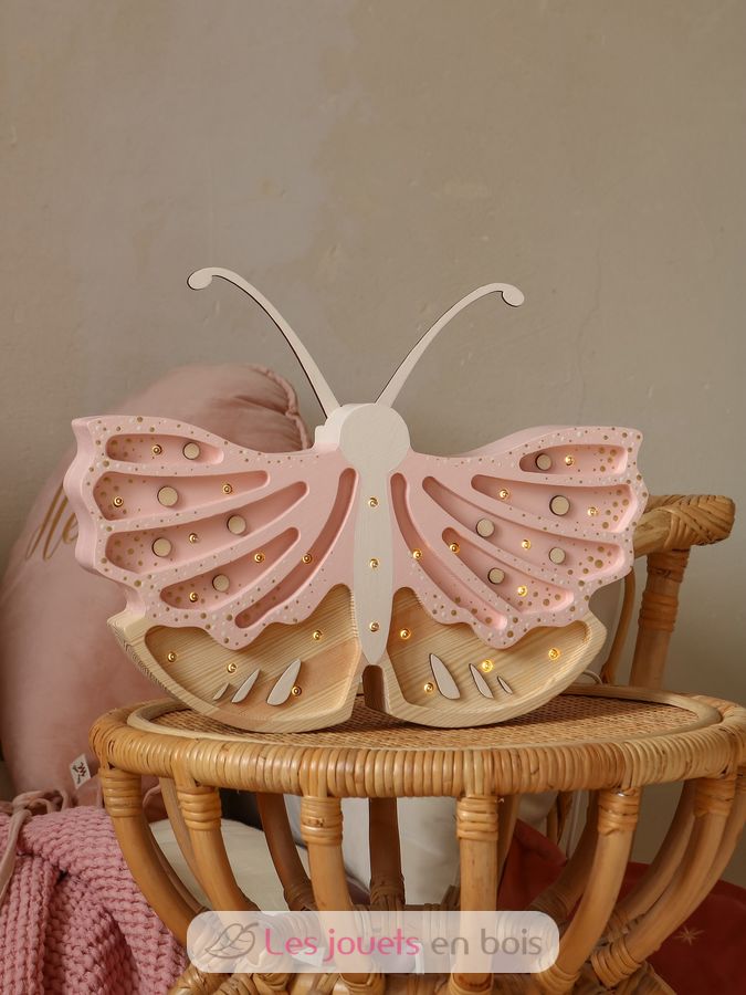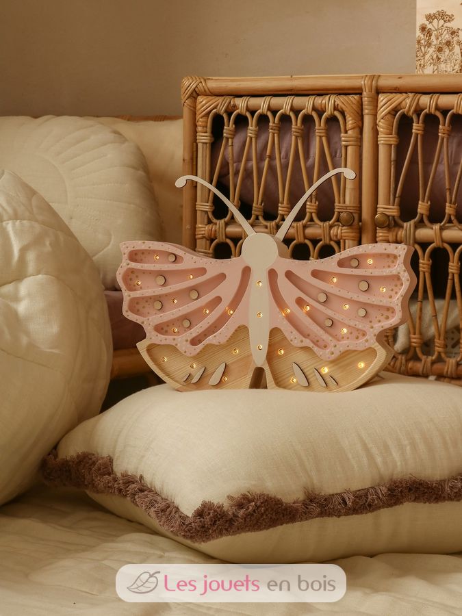 Adorable lámpara nocturna de madera para niños con forma de mariposa.