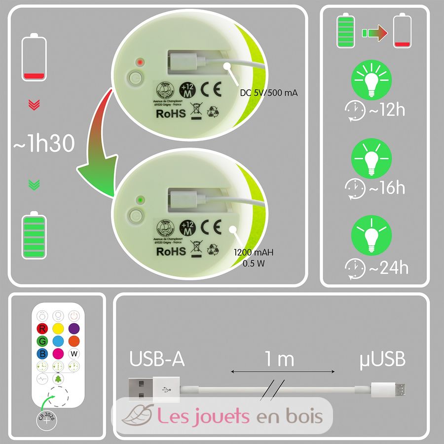 Gran lámpara de noche Oso. Una lámpara de noche de tono cálidos para acompañar y tranquilizar a tu bebé mientras se duerme. El cuerpo de esta lámpara de noche es de silicona de alta calidad, libre de ftalatos y BPA y lavable. La parte superior es de plástico ABS y se puede desmontar de la base. Tiene 3 modos de emitir la luz en 8 colores diferente. Los modos se cambian tocando la lámpara o usando el mando a distancia (incluido). La lámpara de noche funciona con una batería que se recarga conectándola a un dispositivo USB o a un cargador universal (como el del móvil) con un cable USB (incluido). El mando a distancia (pila incluida) permite acceder a funciones adicionales, como la función de temporizador (15, 30 o 60 minutos). Medidas: 12 x 12 x 15 cm