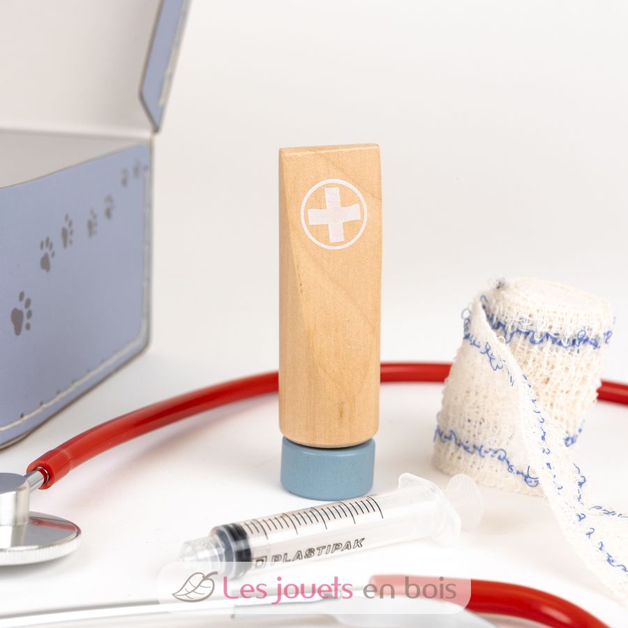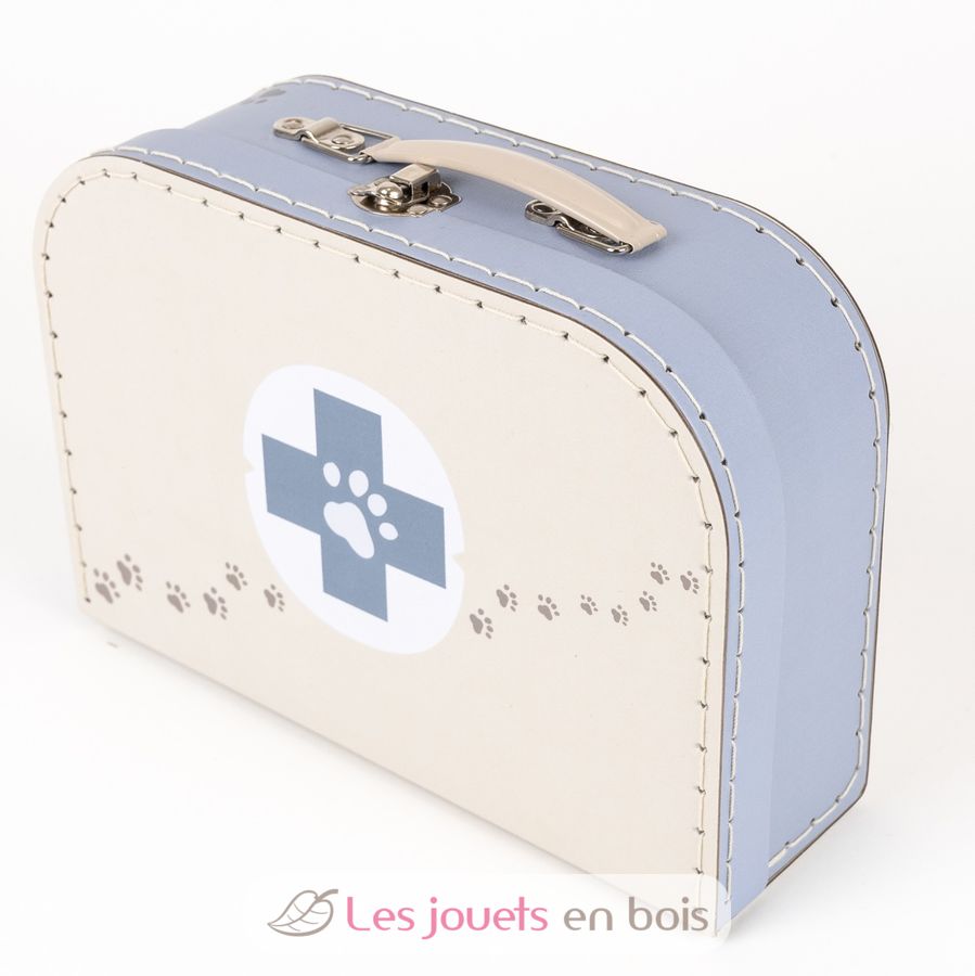 En este maletín veterinario de cartón, los niños encontrarán al gato de peluche Romy y todo lo que necesita para tratarlo: una jeringa, un tubo de pomada, un rollo de vendas, un collar protector y un estetoscopio de metal de verdad. ¿Una emergencia? Este maletín veterinario es fácil de transportar para las consultas a domicilio.