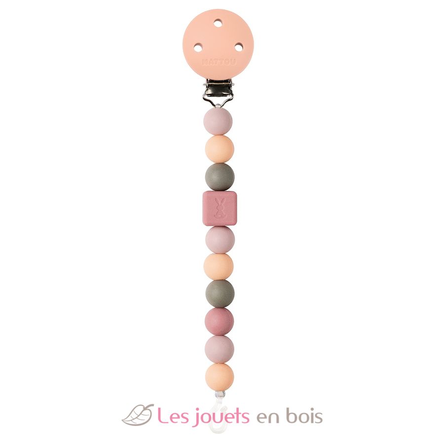 Percha para chupetes de melocotón, una pinza para chupetes de la marca Nattou. Referencia 877350.
