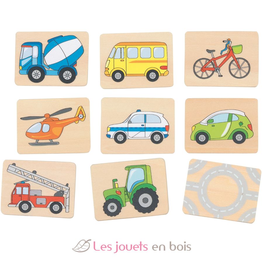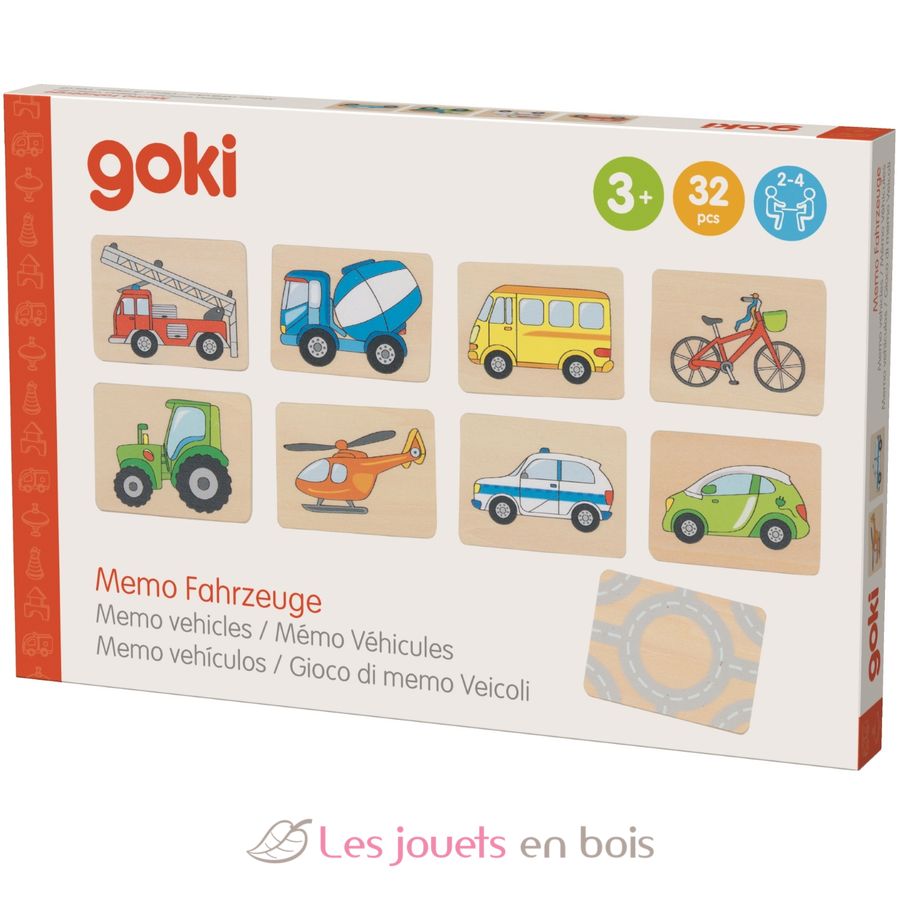 Memo vehículos, un juego educativo de madera de la marca Goki.