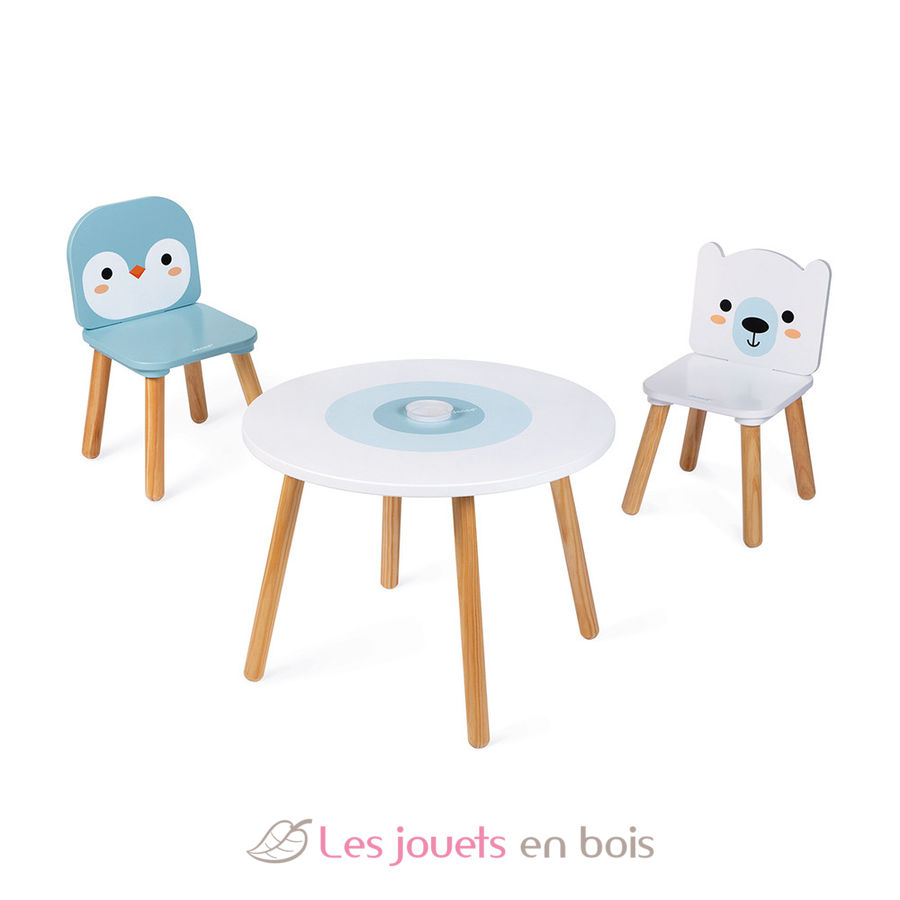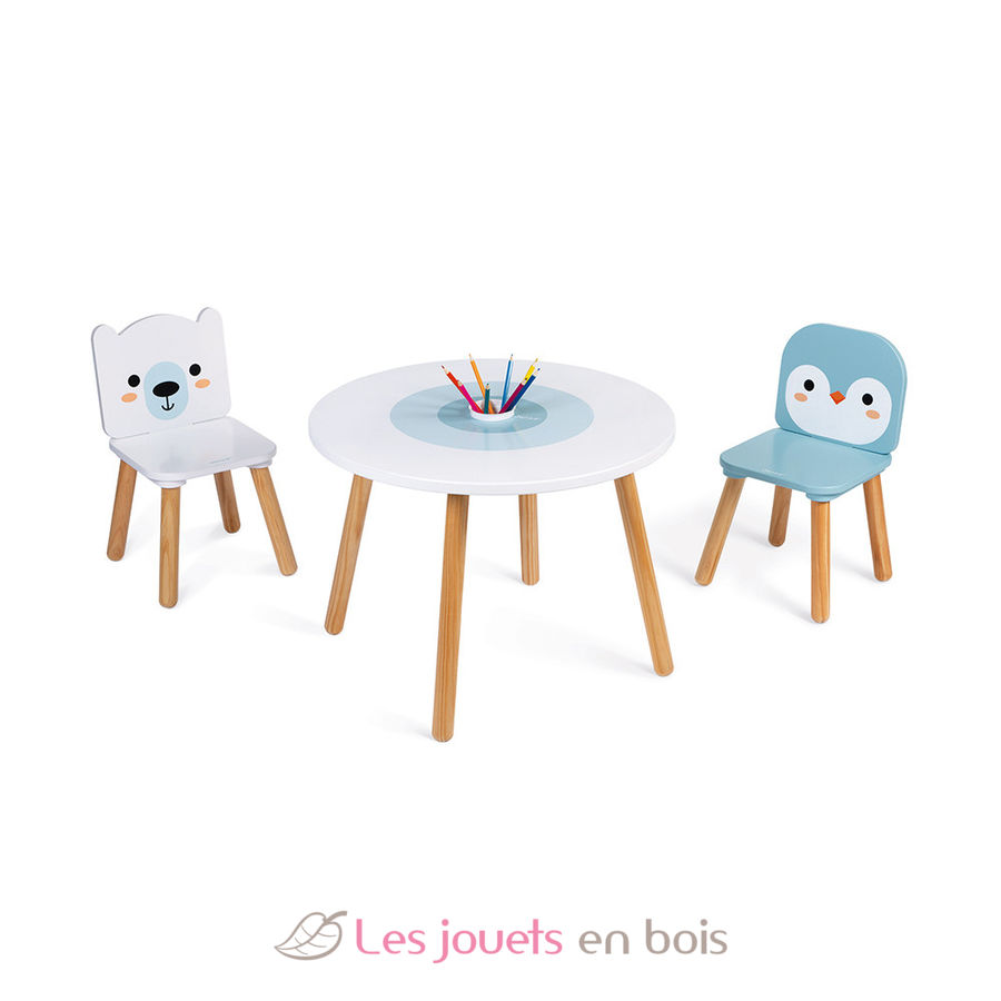 Mesa de madera y 2 sillas de colores suaves para que los niños pinten, dibujen, jueguen Las sillas están adaptadas al tamaño de los niños (a partir de 3 años). Cuenta con portalápices extraíble en el centro de la mesa para guardar rotuladores y lápices de colores (lápices de colores no incluidos). Medidas de la mesa: 60 x 60 x 47 cm. Mesa y 2 sillas para niños de madera de la marca Janod. Referencia J09650.