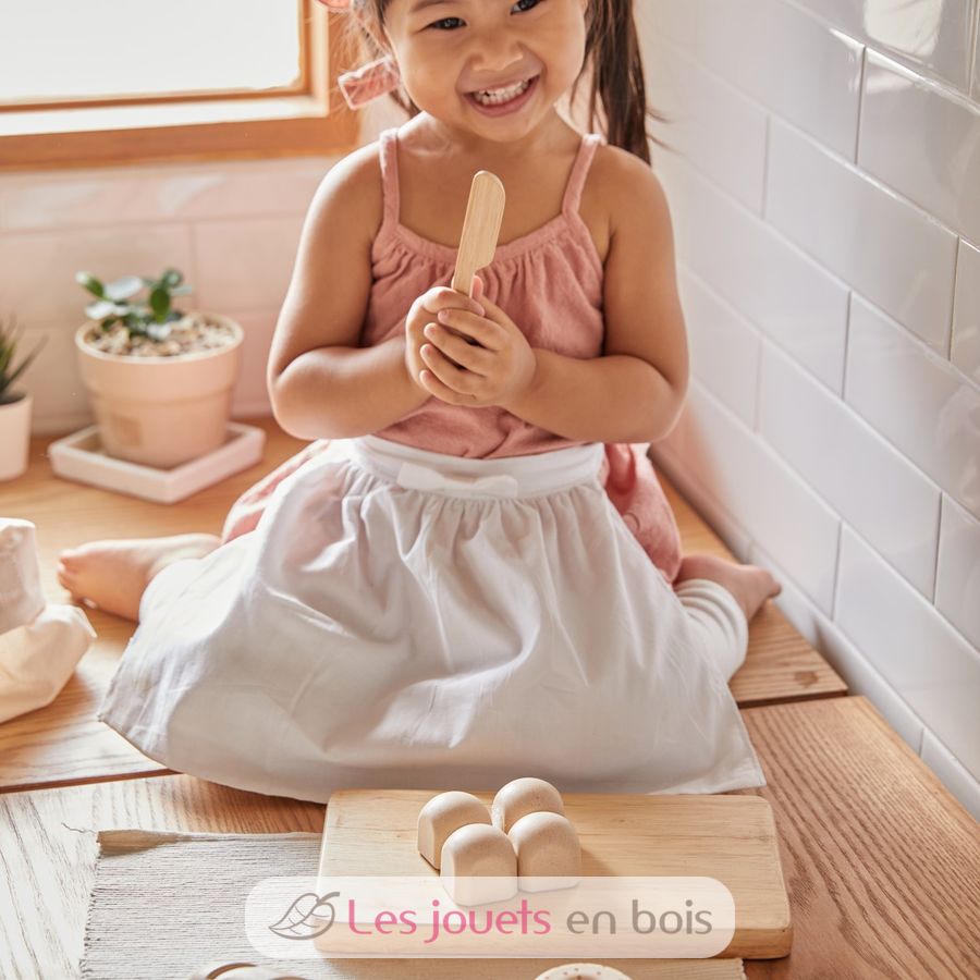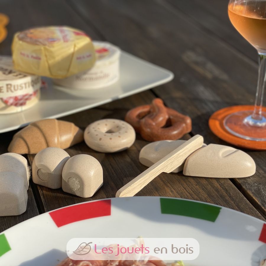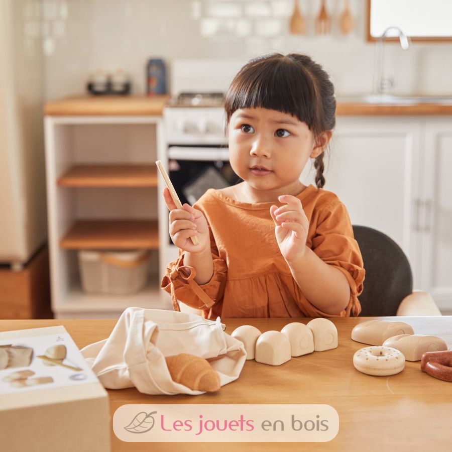 El niño puede divertirse recortando el pan y la baguette y luego volviendo a montar las piezas con el velcro. Un juego de imitación ideal para niños de 2 a 5 años.