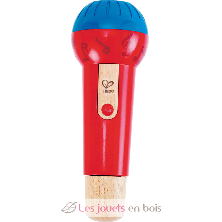 A los niños les encanta cantar y les encantará este simpático micrófono de madera y plástico que funciona sin pilas