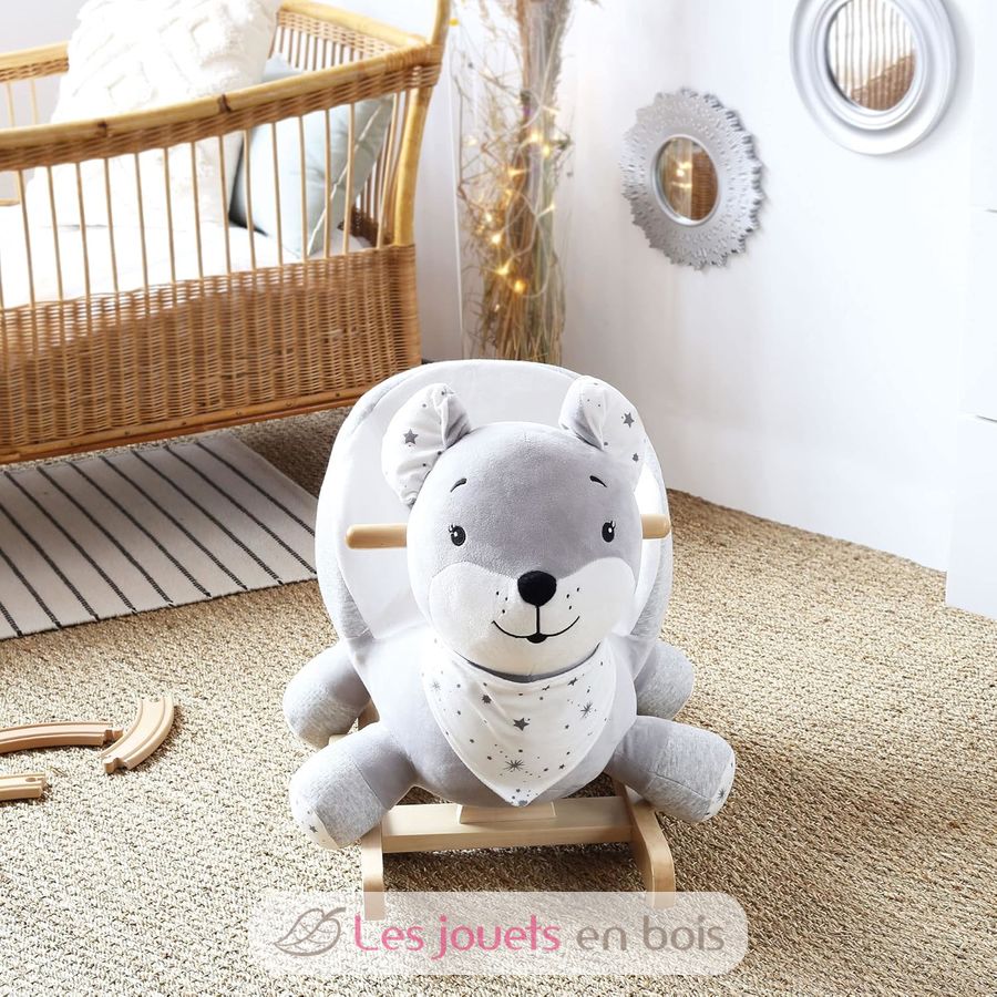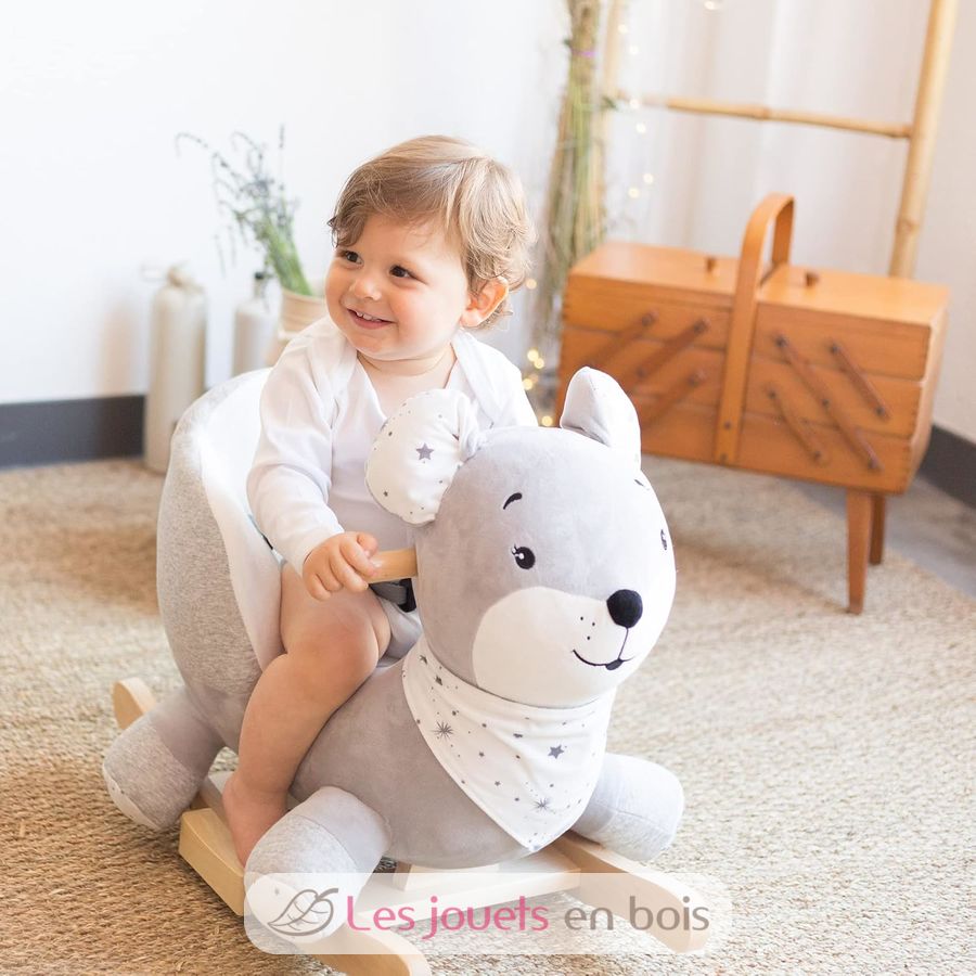 Este peluche balancín con base de madera participará en el despertar así como en el desarrollo de su pequeño.