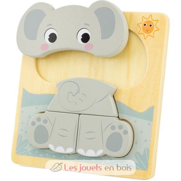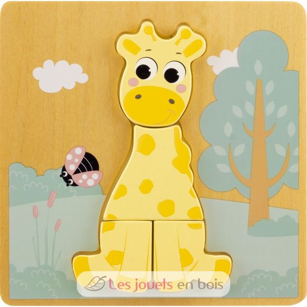Tu hijo se divertirá sustituyendo las 4 piezas de cada uno de los puzles de madera para reconstituir un león, un elefante, una jirafa y un hipopótamo.Este juego manipulativo permite al niño ejercitar su paciencia, su sentido de la observación y su motricidad fina. Dimensiones de un puzle: 15 x 15 x 1,5 cm.