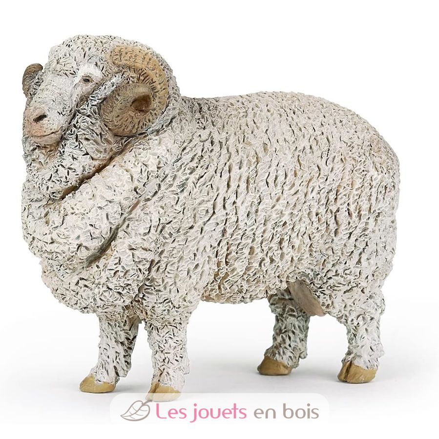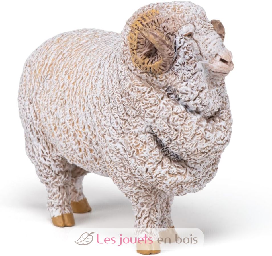 Oveja merina, una bonita figurita sobre el tema de los animales de granja, cuidadosamente pintada a mano y modelada de forma muy realista. Las figuritas de Papo se convertirán rápidamente en la base de una colección que se enriquecerá progresivamente para el despertar y el descubrimiento de su hijo.