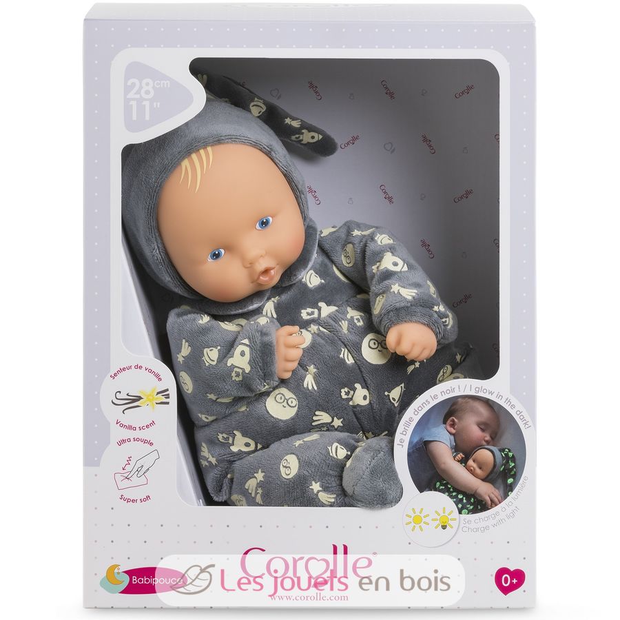 La muñeca suave que puedes llevar a cualquier lugar. Cara de vinilo tranquilizadora. Cuerpo flexible. Reconfortante aroma a vainilla. Desde el nacimiento.