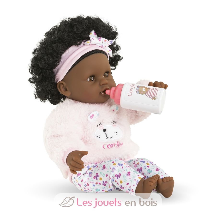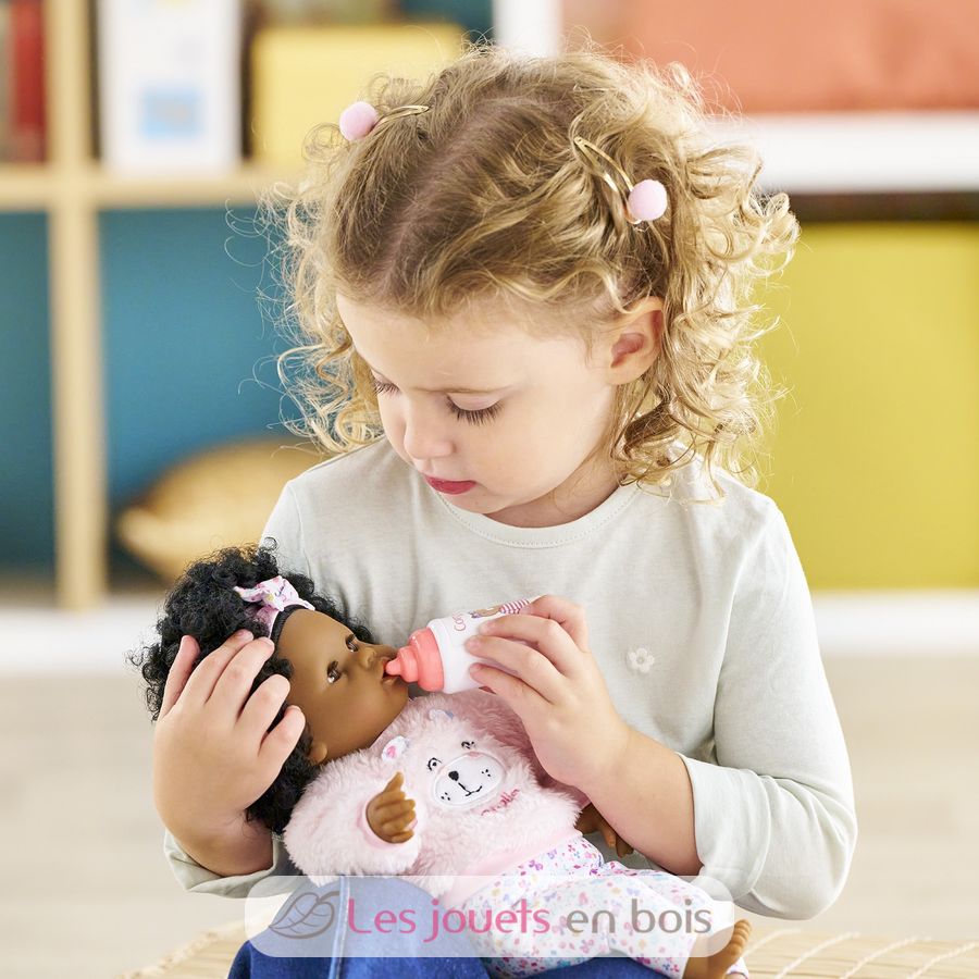 Esta muñeca viene con dos accesorios: su chupete y su biberón. Esta muñeca es ideal para niños a partir de 18 meses.