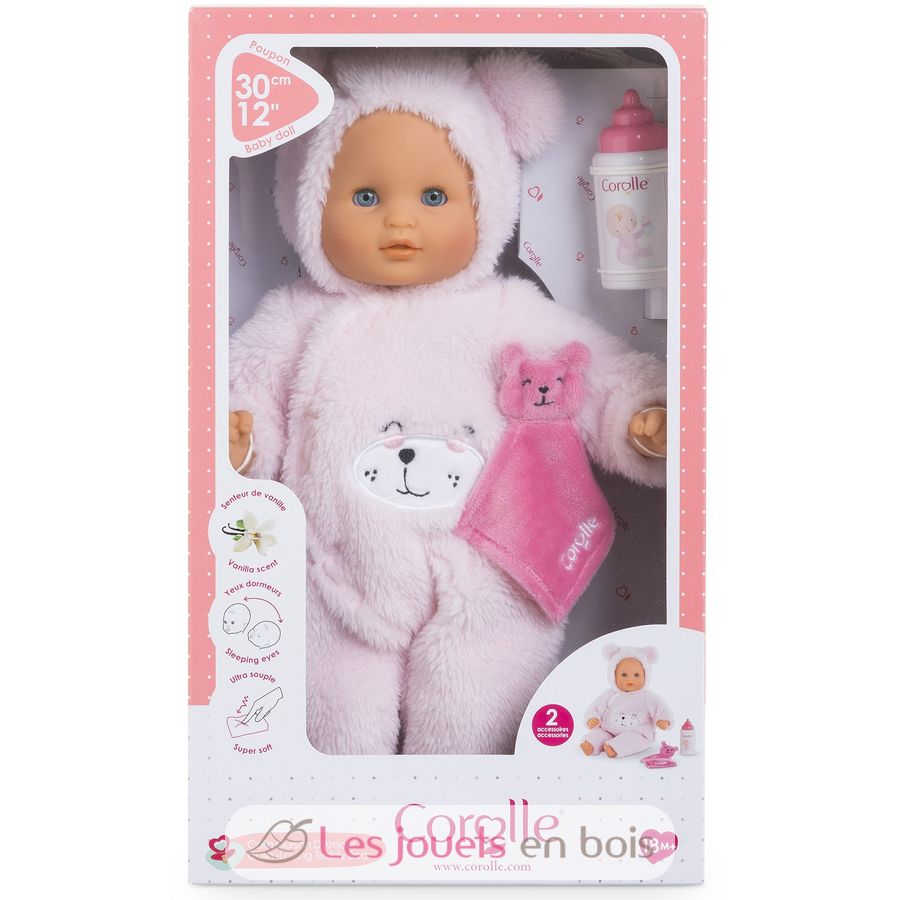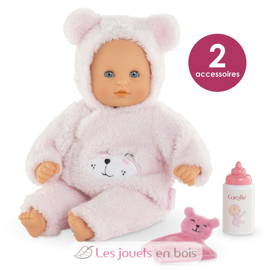Esta muñeca viene con dos accesorios: su peluche y su biberón. Esta muñeca es ideal para niños a partir de 18 meses.