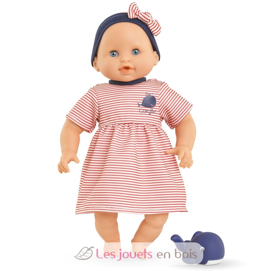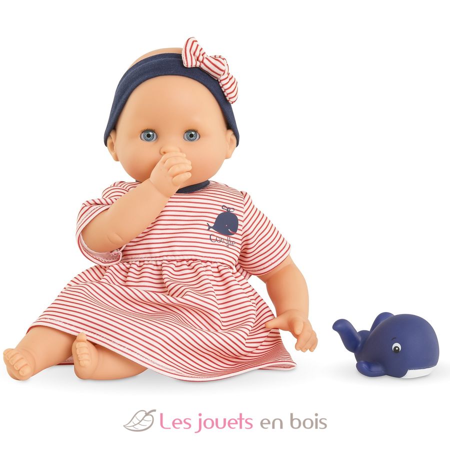 Esta muñeca es la compañera ideal para el baño y los juegos acuáticos. Se introduce en el agua para ayudar a tu hijo a familiarizarse con el agua ya sea en el baño, en la piscina o en el mar.