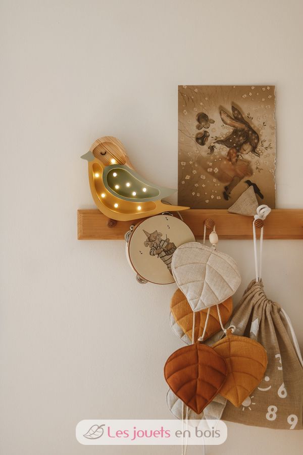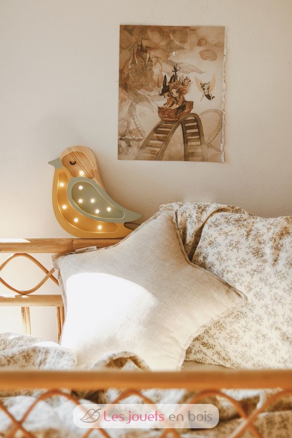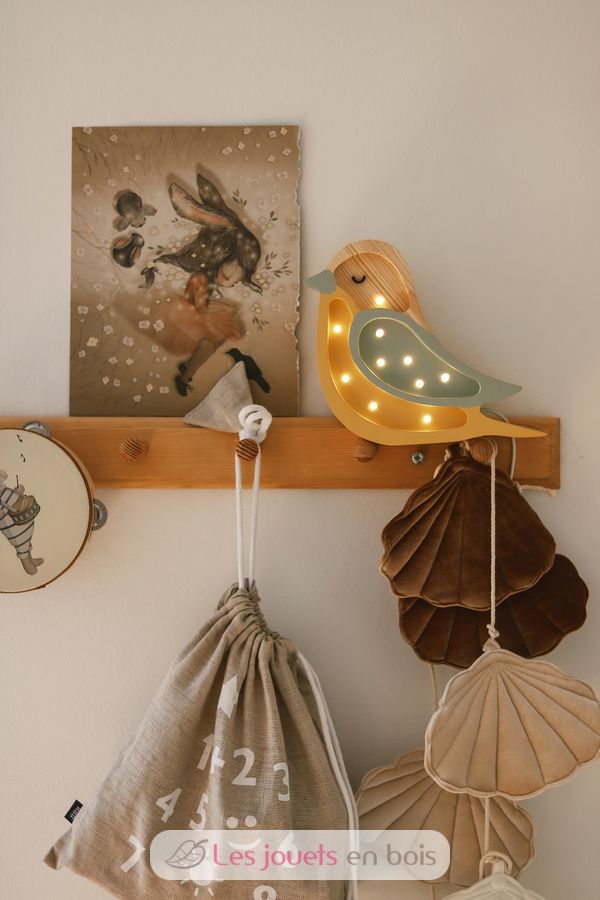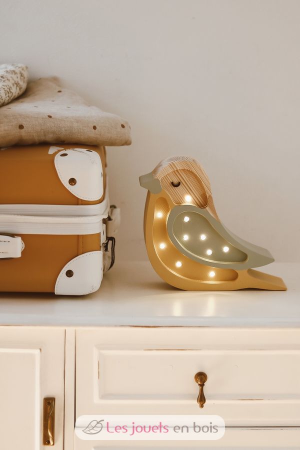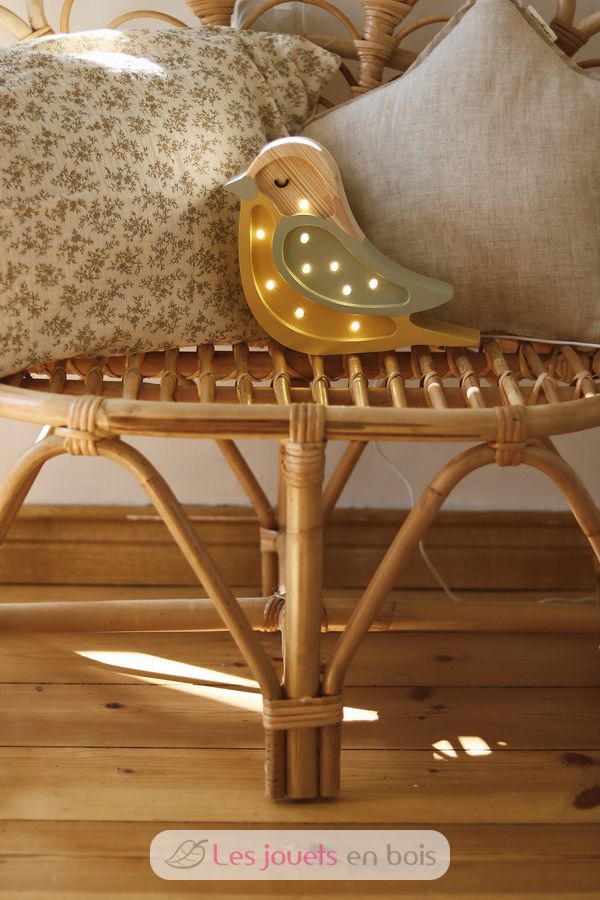 Adorable lámpara nocturna de madera para niños con forma de pájaro.