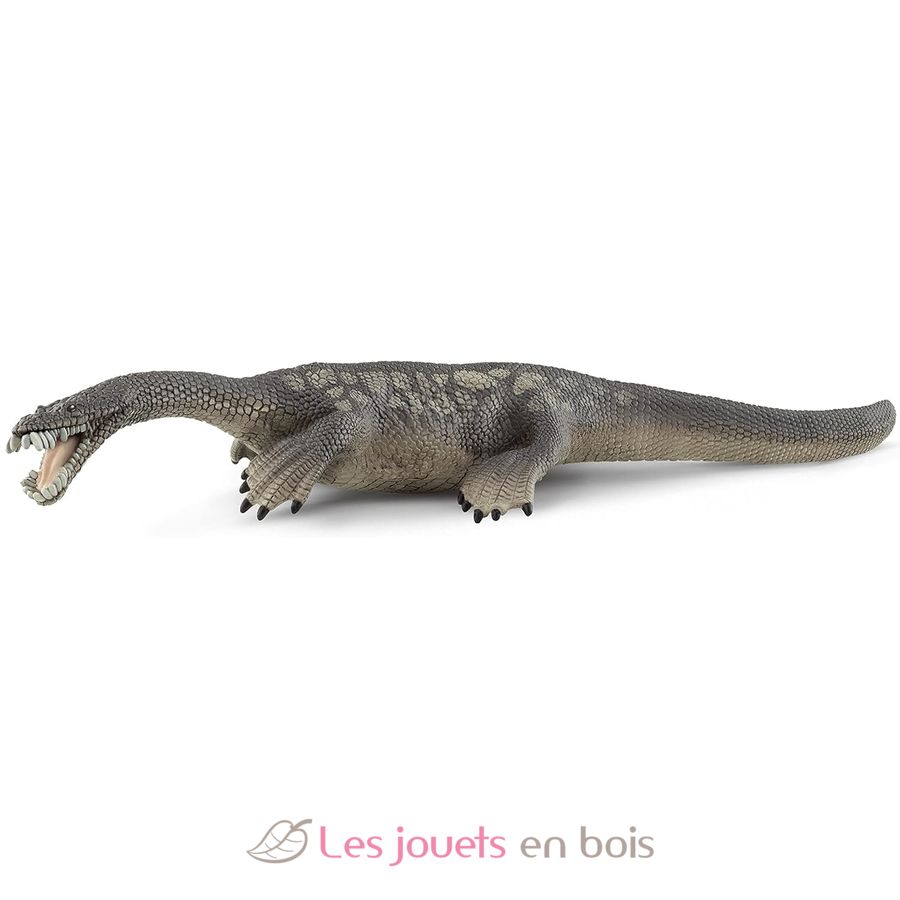 El Nothosaurus es un lagarto semiacuático. Gracias a sus anchas patas en forma de abanico, este dinosaurio podía sumergirse en las profundidades del agua, pero también deslizarse sobre las dunas con gracia en tierra firme. Su largo y delgado cuello es perfecto para sumergirse en los corales marinos en busca de pequeños peces. Se han encontrado fósiles en Alemania y Egipto