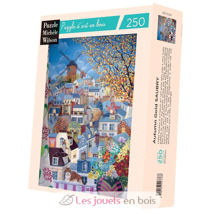 Un puzzle de madera de 250 piezas fabricado en Francia por Michele Wilson. Rompecabezas de madera para adultos.