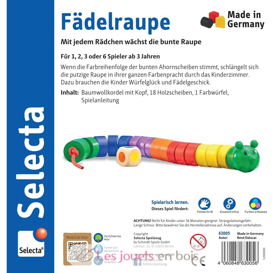 Tira los dados, reconoce los colores, luego enhebra... ideal para niños de 3 años. Cuando todos los discos de arce están ensartados, una hermosa oruga se arrastra por el vivero. Un gran juego de habilidad con dados de colores. Un juguete fabricado en Alemania. Contenido: cuerda de algodón con botón y 18 ruedas pequeñas, 1 dado de color, 1 regla de juego.