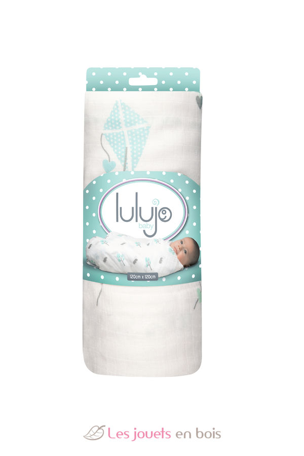 Pañal maxi de viscosa de bambú y algodón - Cometa azul 120 x 120 cm, de la marca Lulujo, ref 121-005-001.