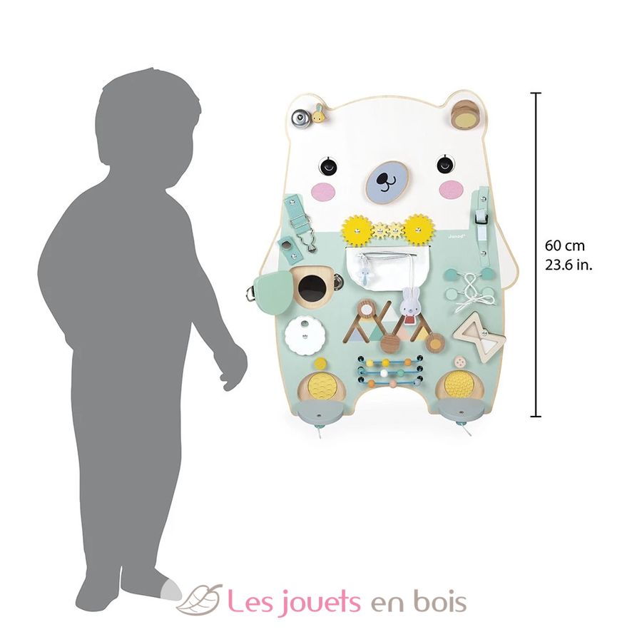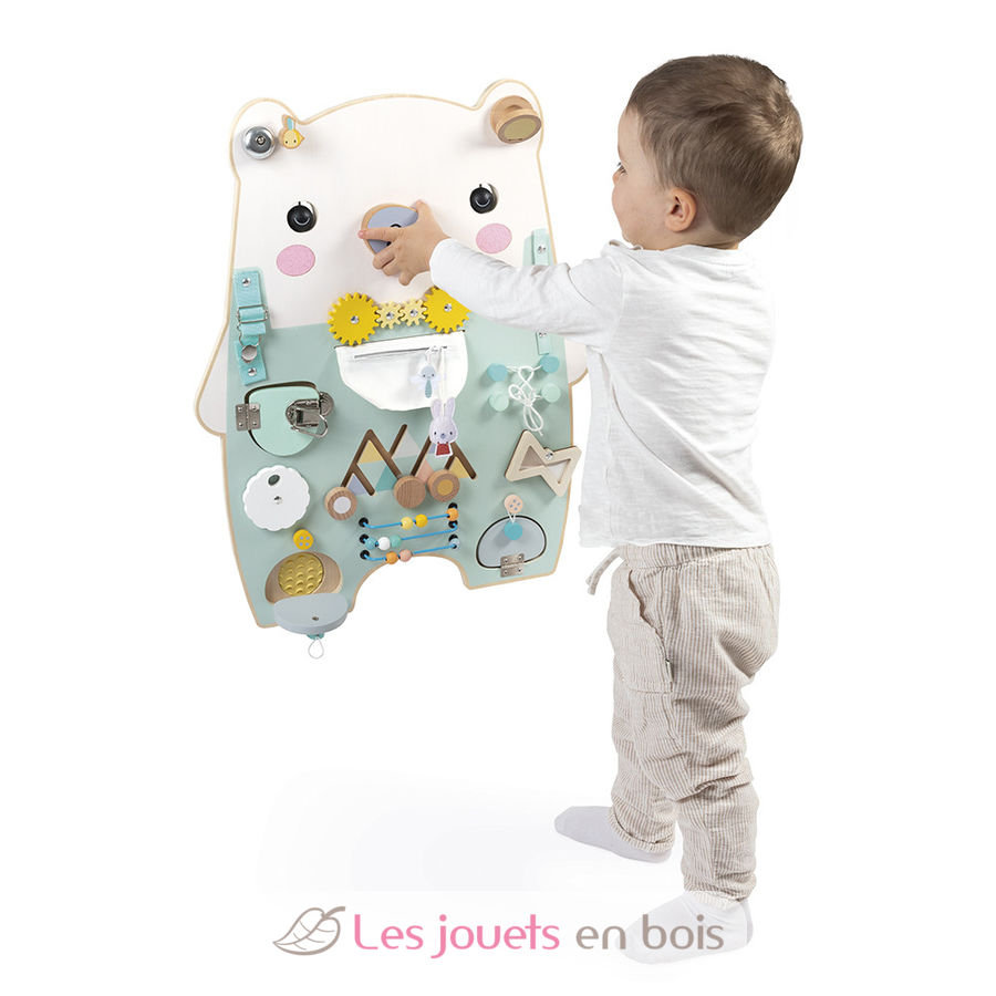 Panel de actividades Osito para colocar o fijar a la pared. Ofrece más de 20 entretenidos juegos de aprendizaje., perfecto para estimular al bebé, a partir de 18 meses.