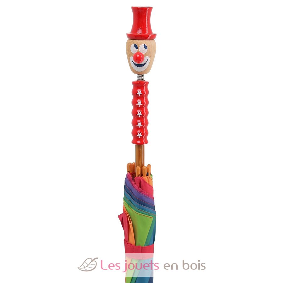Un accesorio práctico y encantador con sus colores y su pomo en forma de cabeza de payaso.