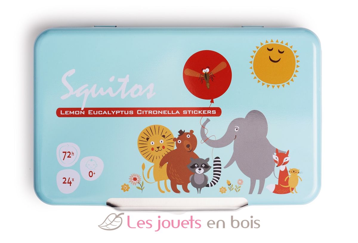 Squitos son parches antimosquitos especialmente diseñados para niños pequeños y bebés (0+), elaborados con ingredientes 100% naturales. Estos parches Squitos son altamente eficaces contra los mosquitosgracias a la combinación de dos aceites esenciales que emiten un olor continuo:Aceite esencial de hierba de limón y de eucalipto. No contienen sustancias nocivas y, por tanto, son seguras para los niños.