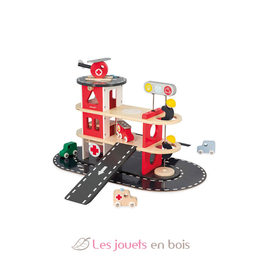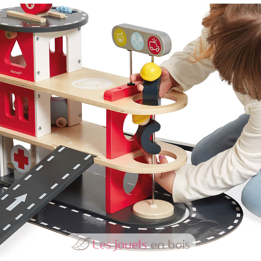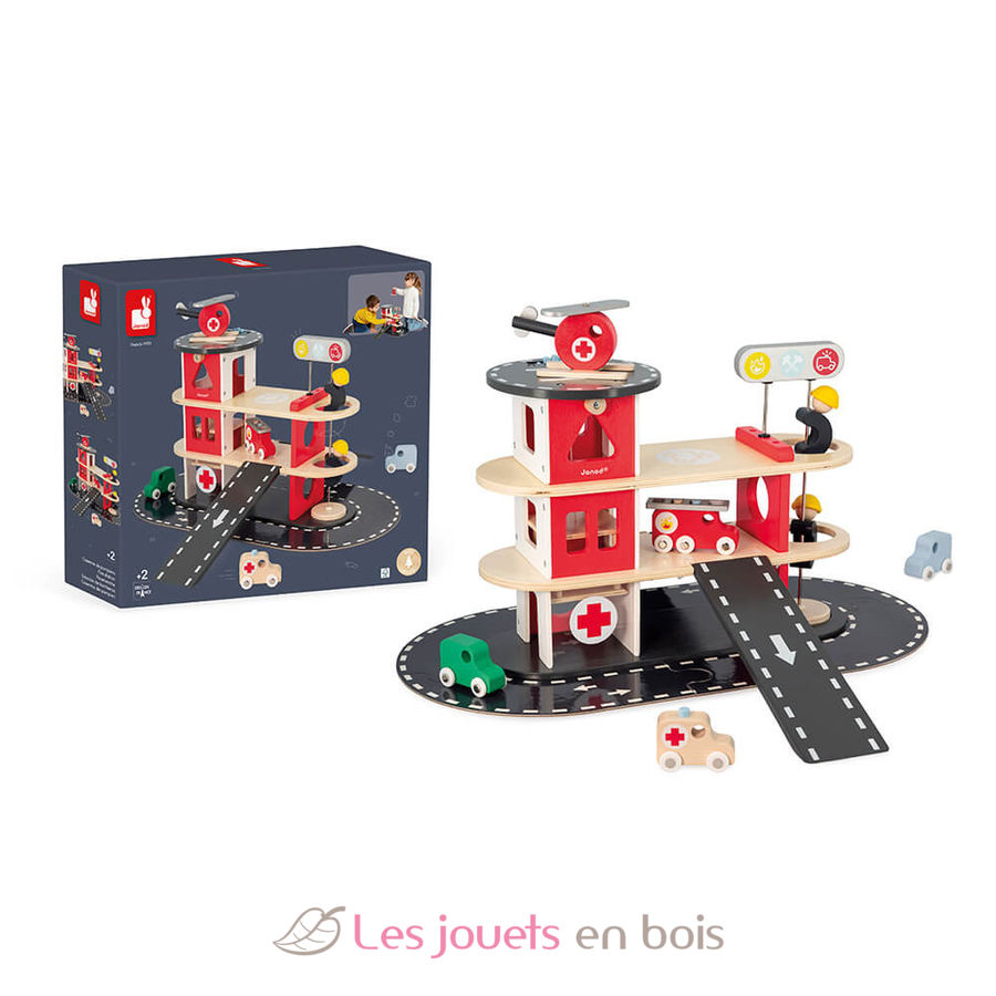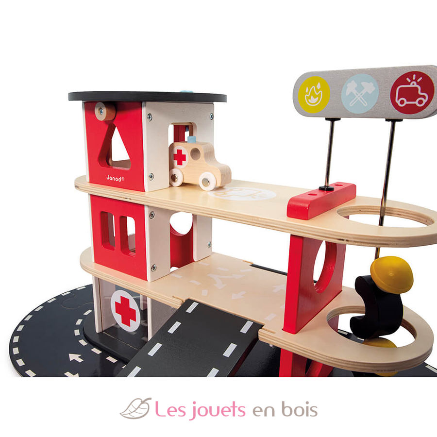Parque de bomberos de madera de la marca Janod. Referencia J04639.