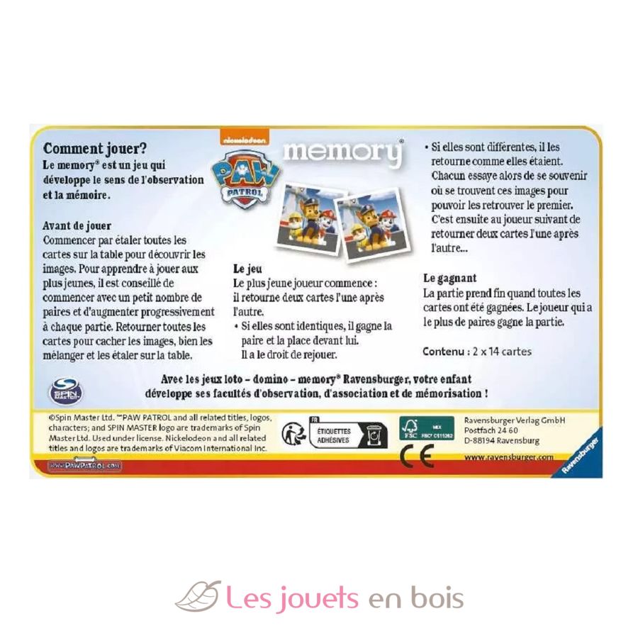 Patrulla Canina de la Memoria, un juego de observación y memoria de la marca Ravensburger.