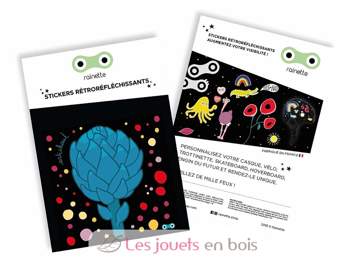 Rainette ofrece una amplia selección de pegatinas retrorreflectantes bonitas, coloridas y a veces extravagantes para todas las edades. Personalice el casco de su hijo (o el suyo) y hágalo único. Pega estas pegatinas en tu casco de bicicleta, patinete, monopatín, hoverboard, máquina del futuro... Una buena manera de que tu hijo haga suyo su casco y le encante llevarlo!