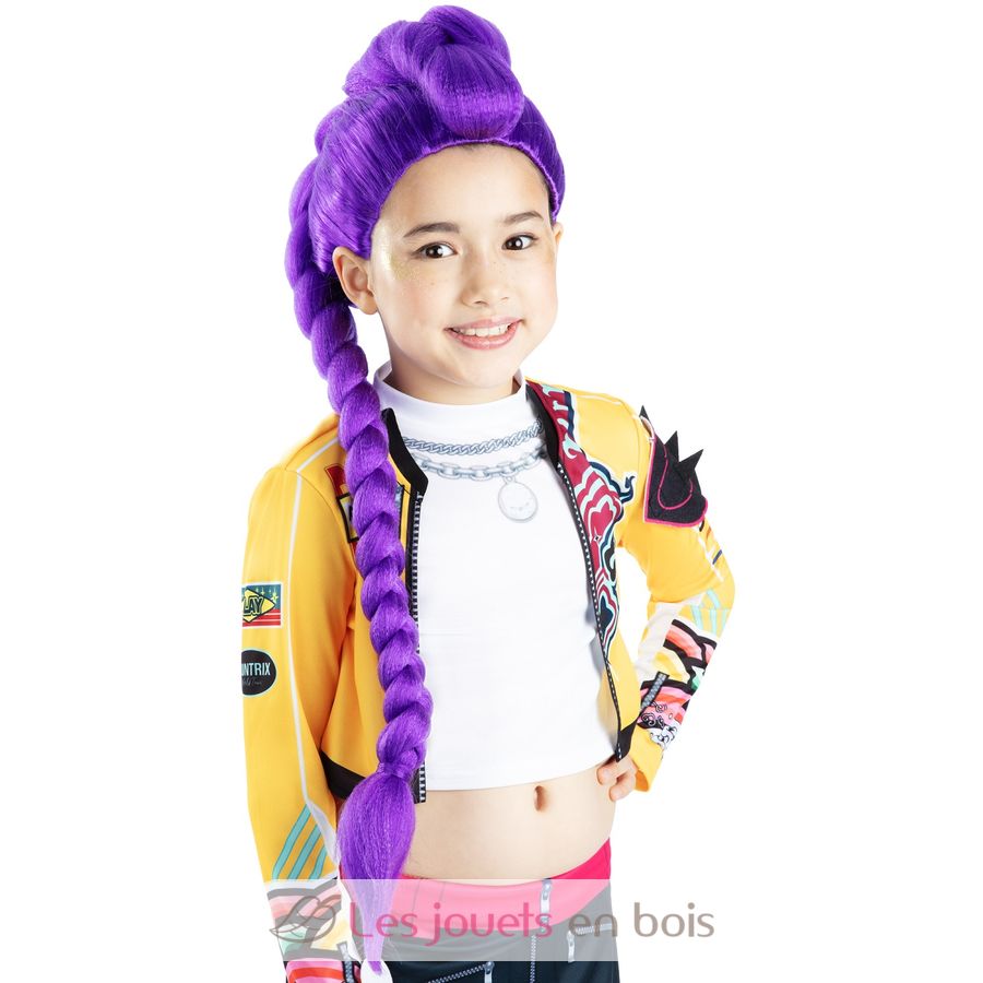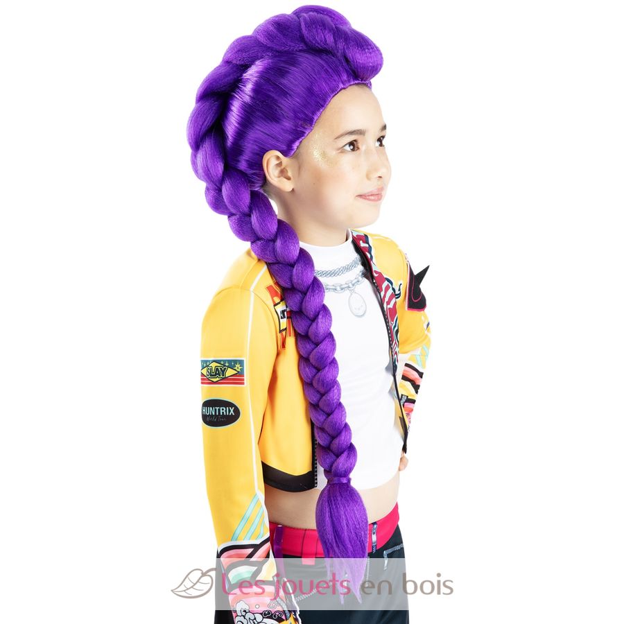 Esta peluca de Rumi luce una larga melena morada con una trenza larguísima.